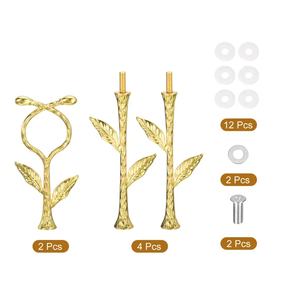 Unique Bargains 3-tier Cupcake Stand Handles With Screws Vine Gold 2 Sets