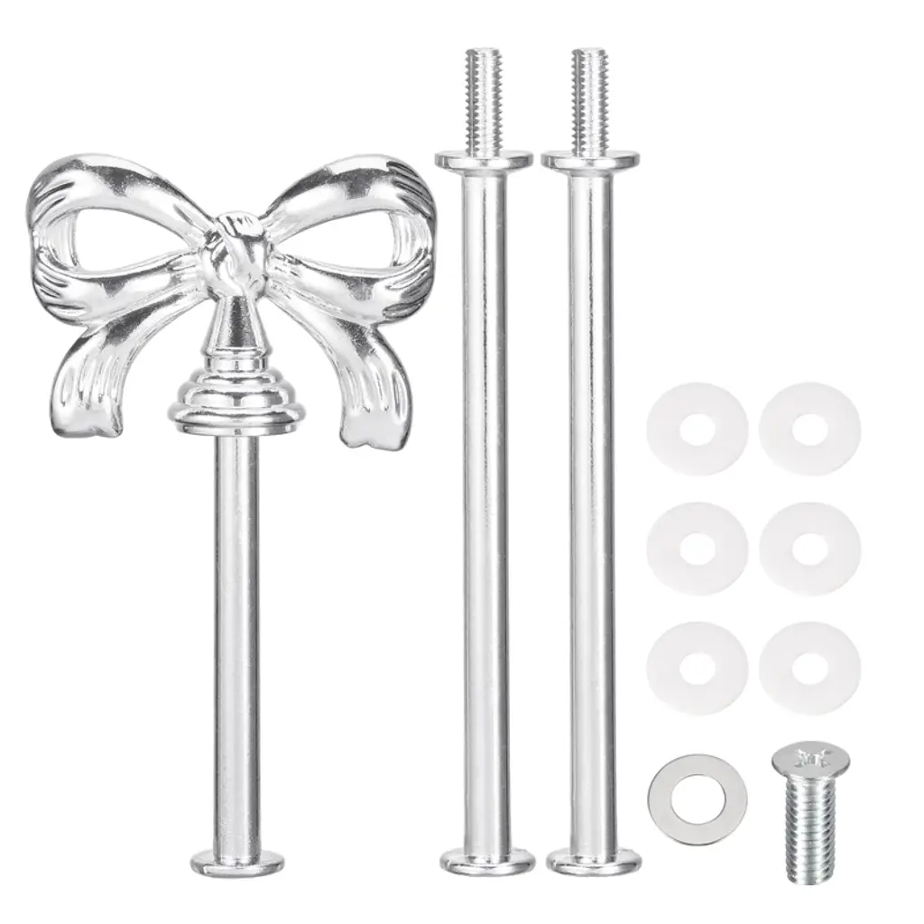 This cupcake stand hardware set includes handles made from durable zinc alloy. The unique shape adds a decorative touch to any dessert presentation. It is easy to assemble and disassemble, making it convenient for storage and transport. The handles can be paired with various plate materials, including ceramic and glass, to create an exquisite cupcake stand. Ideal for a range of events from birthday parties to weddings, this versatile stand is perfect for showcasing desserts, fruits, and snacks. It also makes a thoughtful gift for loved ones who enjoy baking and entertaining.