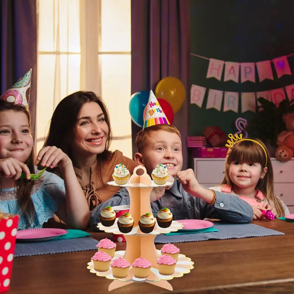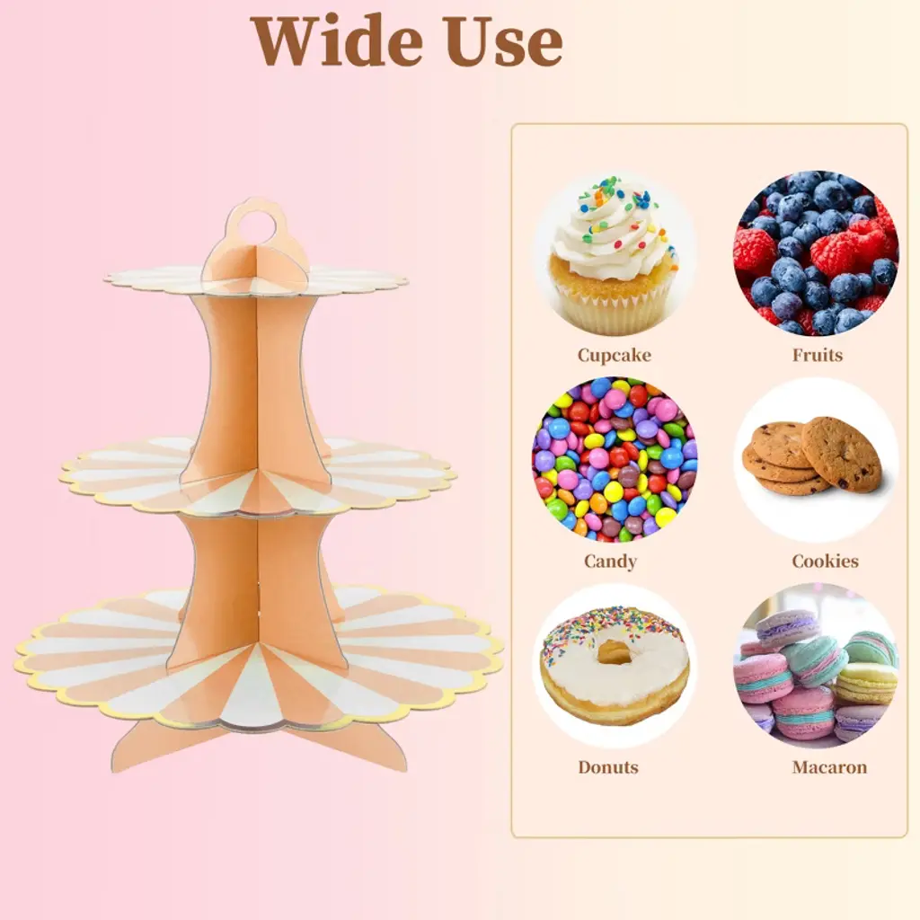 Unique Bargains 3-tier Cupcake Stand Tower Cardboard Dessert Cup Cake Stand Tower Pink 2 Pcs