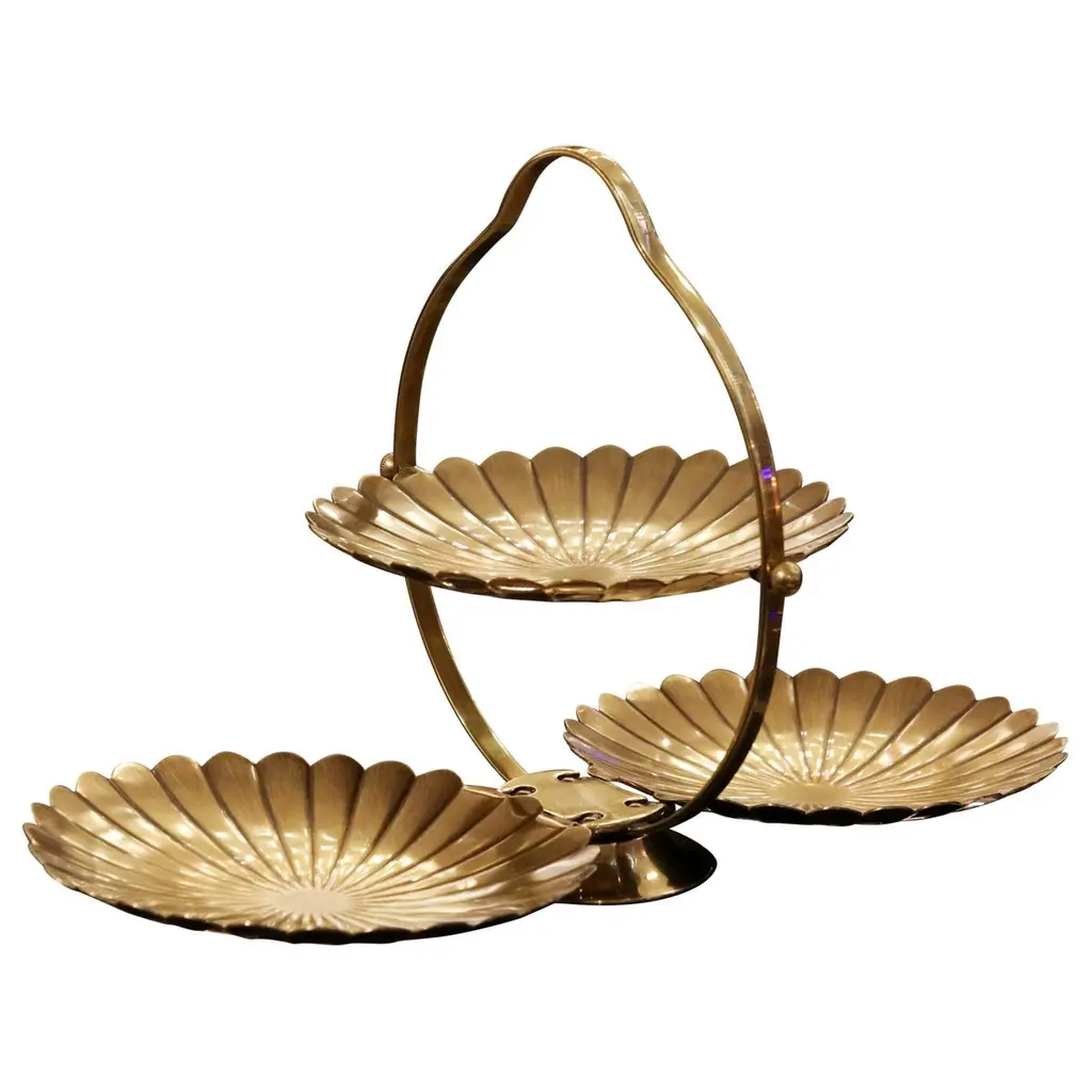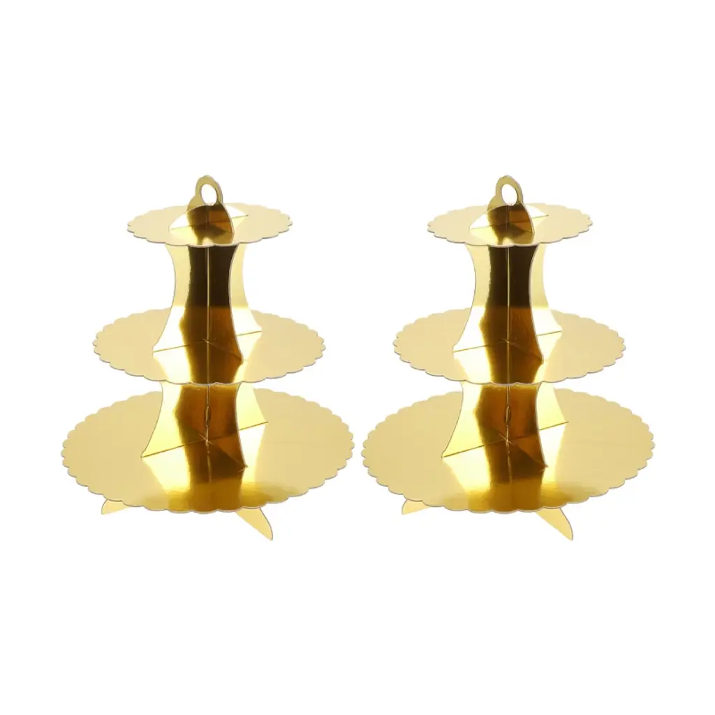 Unique Bargains 3-tier Lace Cupcake Stand Tower Gold Tone 2 Pcs