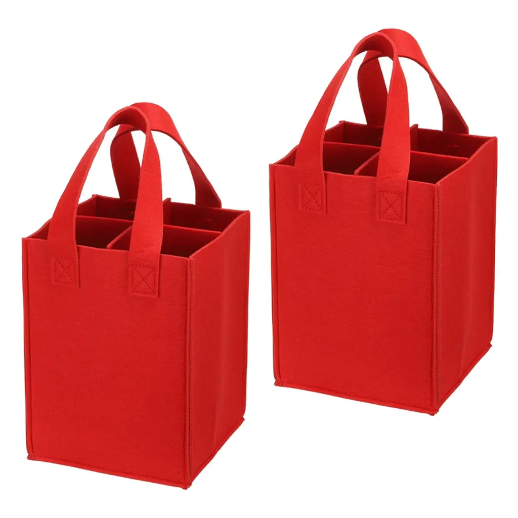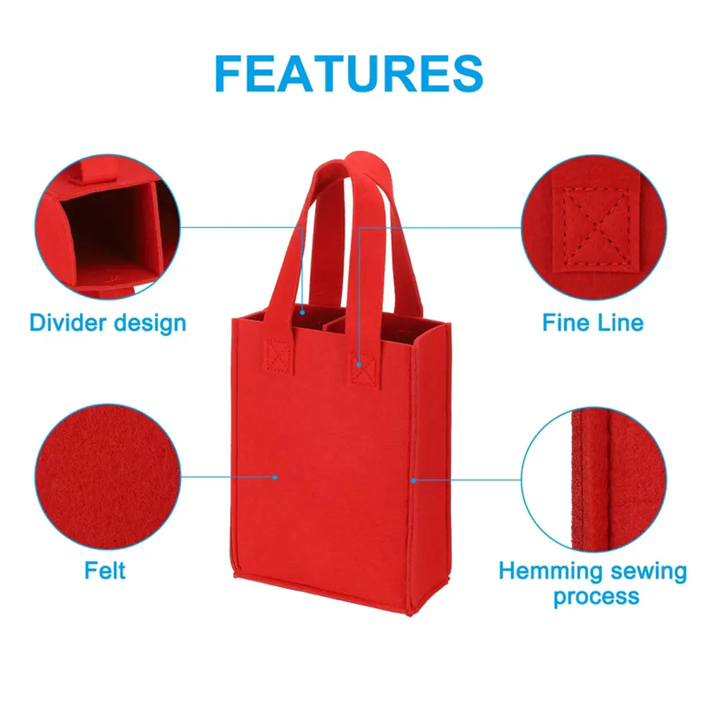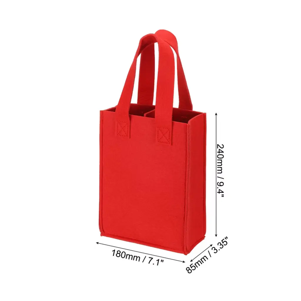 Unique Bargains Felt Reusable 2 Bottle Wine Carrier Tote Bag With Divider Red
