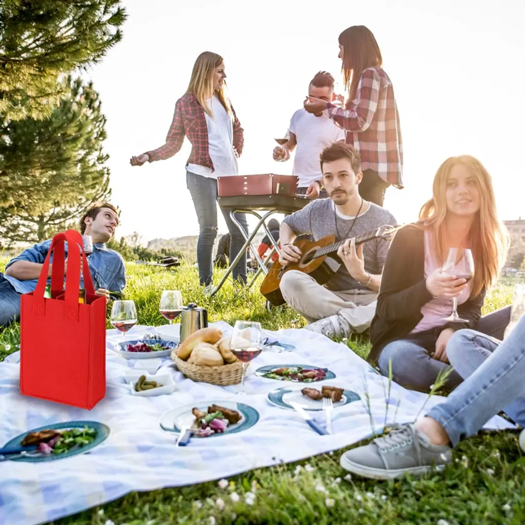 This wine carrier tote bag offers a stylish and reliable solution for transporting wine bottles. It is designed for wine enthusiasts and travelers who need a protective storage container. Ideal for outdoor picnics, parties, and special occasions, it also makes a thoughtful gift. The bag's divider design allows for carrying multiple bottles quietly, while the soft handles ensure a comfortable grip. Versatile enough to store books and craft supplies as well.