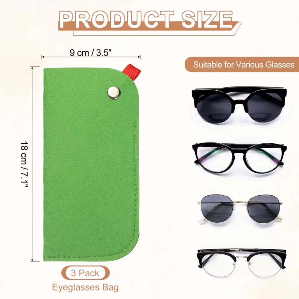 Unique Bargains Felt Soft Storage Scratch-resistant Women Men Eyeglasses Bag 3 Pcs Green