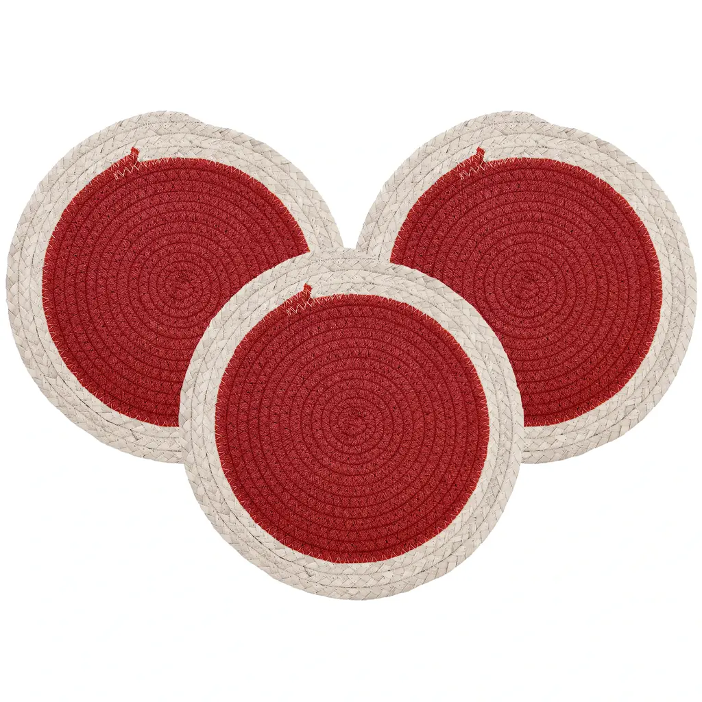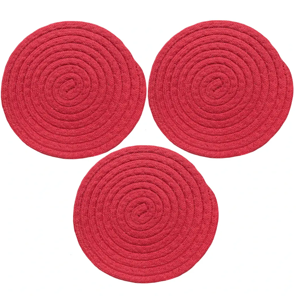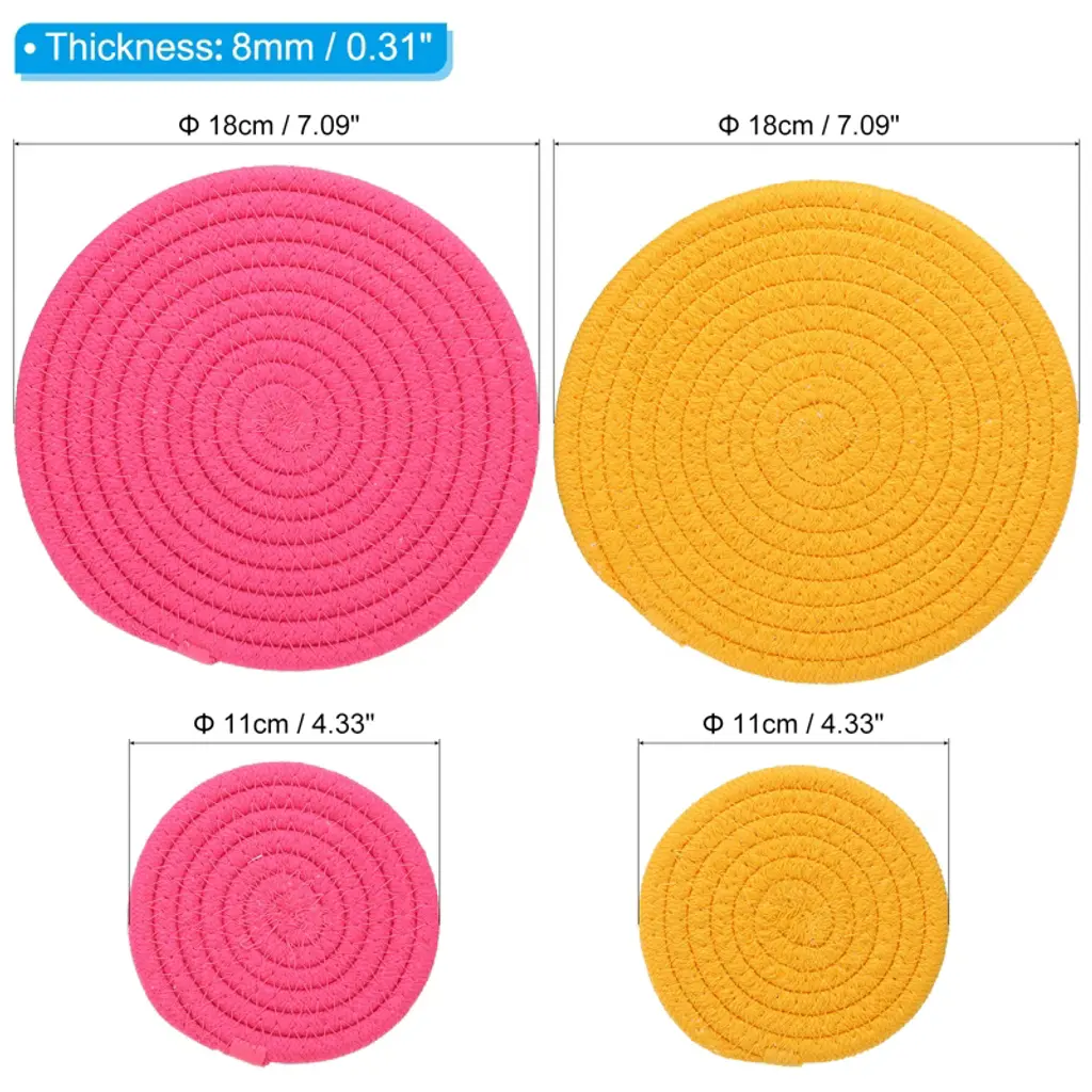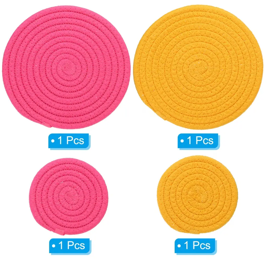 Unique Bargains Indoor Non-slip Absorbent Cotton Rope Plant Saucers Set Of 4 Autumn Yellow & Plum Red
