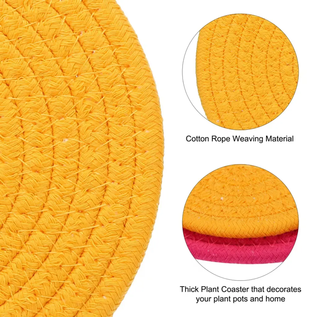 The plant coasters provide a stable base for potted plants, preventing water scratching on furniture or floors. These round plant coasters are made of cotton rope, and feature a non-slip surface to keep plant pots in place. They quickly absorb any drips or spills, ensuring surfaces stay dry. The plant coasters come ready to use, with no assembly or installation necessary. They allow for easy storage when not in use, saving space and keeping things organized. Suitable for use in living rooms, bedrooms, offices, and more, they can also serve as drying mats, cup trivets, placemats, coasters, beer cushions, coffee cushions, vase cushions, tea cushions, and much more.
