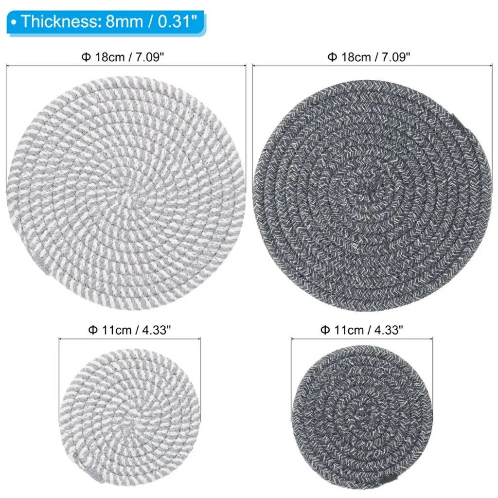 The plant coasters provide a stable base for potted plants, preventing water scratching on furniture or floors. These round plant coasters are made of cotton rope, and feature a non-slip surface to keep plant pots in place. They quickly absorb any drips or spills, ensuring surfaces stay dry. The plant coasters come ready to use, with no assembly or installation necessary. They allow for easy storage when not in use, saving space and keeping things organized. Suitable for use in living rooms, bedrooms, offices, and more, they can also serve as drying mats, cup trivets, placemats, coasters, beer cushions, coffee cushions, vase cushions, tea cushions, and much more.