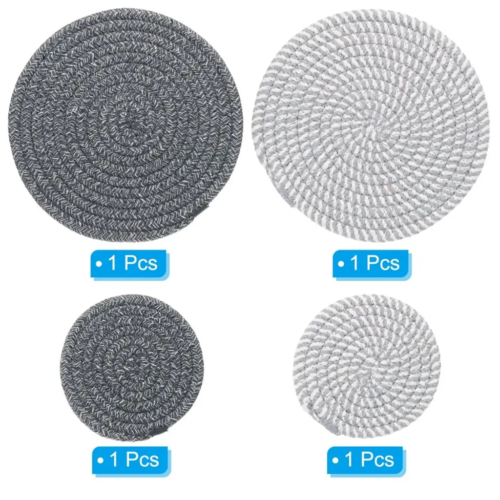 Unique Bargains Indoor Non-slip Absorbent Cotton Rope Plant Saucers Set Of 4 Gray Stripes & Dark Gray Color