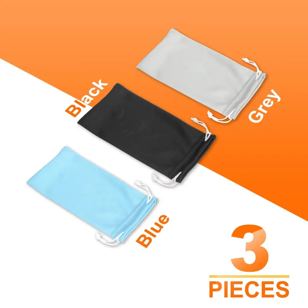Unique Bargains Microfiber Soft Storage Women Men Eyeglasses Bag 3 Pcs Black, Blue, Grey