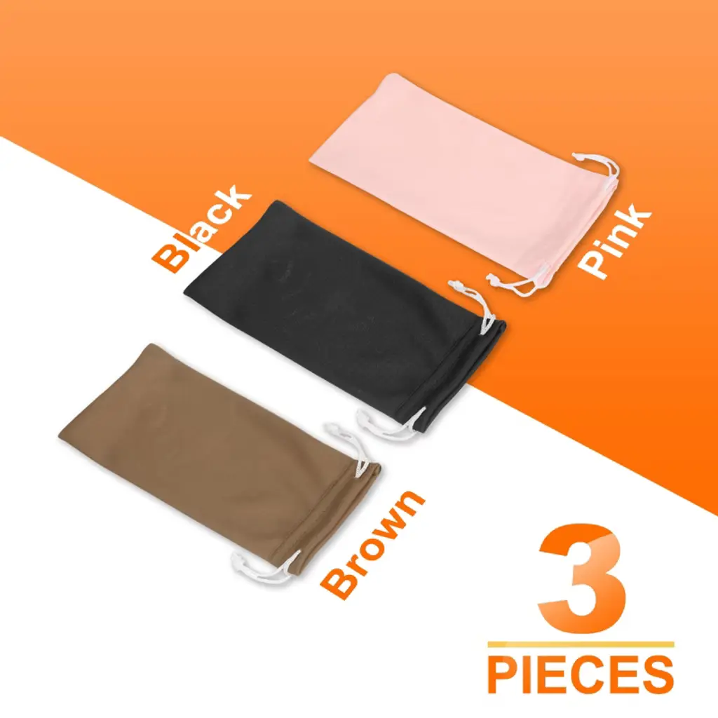 Unique Bargains Microfiber Soft Storage Women Men Eyeglasses Bag 3 Pcs Black, Brown, Pink