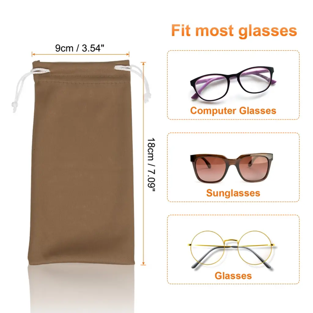 This glasses bag is made of soft microfiber that won't scratch lenses. It's meticulously crafted with tightly stitched edges. Its slim and lightweight design makes it easy to carry around. It also features shockproof protection to prevent lenses from bending or breaking. Besides storing glasses, this versatile bag can also hold a variety of small items, such as watches, jewelry, ID cards, and keys. It's a thoughtful gift for friends or family who wear glasses or sunglasses.