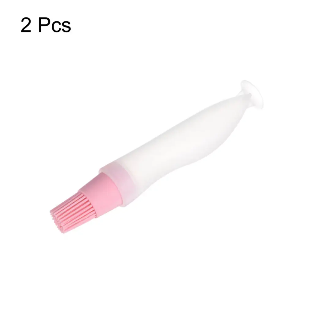 Unique Bargains Silicone Refillable Bbq Basting Oil Bottle Brushes With Cap 2 Pcs Pink