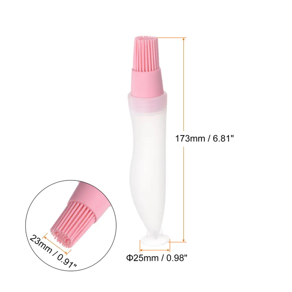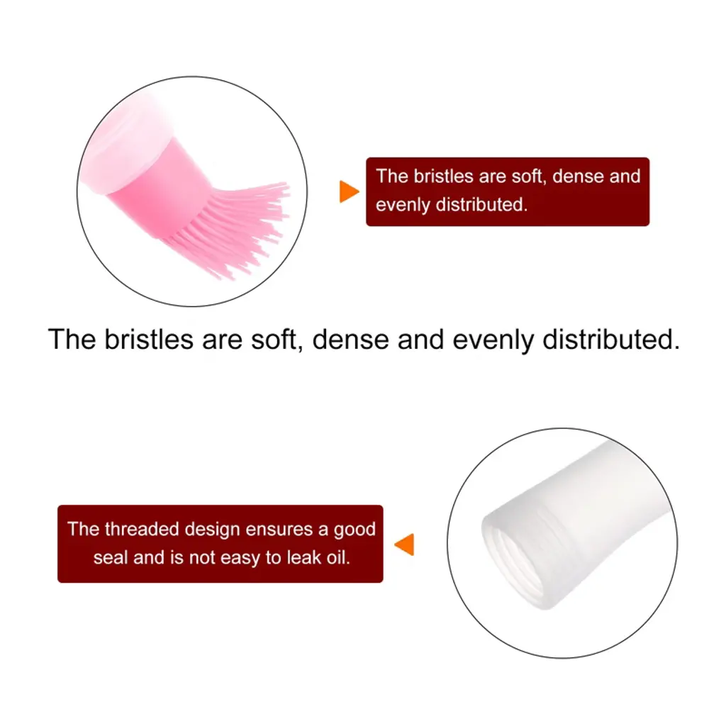 1. The brush and bottle are constructed from silicone material known for its exceptional flexibility, resistance to deformation, and ability to withstand high temperatures. The soft, dense, and evenly distributed bristles ensure the efficient application of liquids. Additionally, the translucent bottle features a scale, allowing for precise measurement and preventing excessive oil usage. 2. The detachable silicone brush head is designed for easy cleaning, and its threaded design ensures a secure seal, preventing oil leakage during use. 3. This versatile product is ideal for a wide range of cooking applications including daily kitchen use, baking, and outdoor barbecuing. It is specifically useful for tasks such as frying steak, grilling, and brushing oil onto baked snacks.