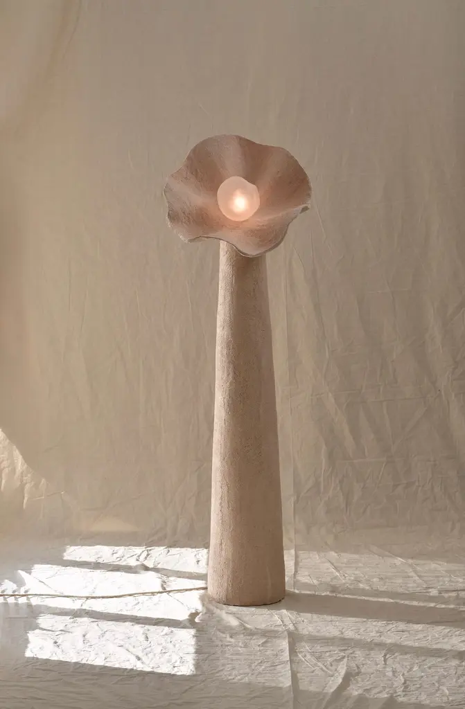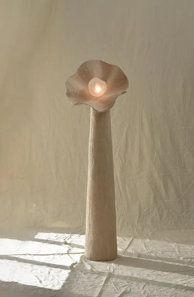 Unique, Medium Hand Blown Glass and Fabric Eggshell Bloom Lamp Joanne OdishoDimensions: W 40 x D 40 x H 90 (top), W 18 (bottom)Materials: Eggshell lamp shade, Eggshell Base, Hand Blown Glass Globe cover, Linen Fabric Cord. LIGHTING INCLUSIONS• Phillips G9 Dimmable bulb2700k Warm White• Dimmer Switch• 240V Plug• 2M Cord lengthJoanne Odisho is a designer committed to sustainable practices, emphasising mindful material selection to minimise waste. Her work aims to foster awareness of where products come from and encourage more environmentally conscious choices in the home. With a strong foundation in interior design, Odisho seamlessly blends spatial planning and human interaction into her creative process. She transforms abstract concepts into visually compelling, functional objects, drawing inspiration from architecture and the natural world.All our lamps can be wired according to each country. If sold to the USA it will be wired for the USA for instance.