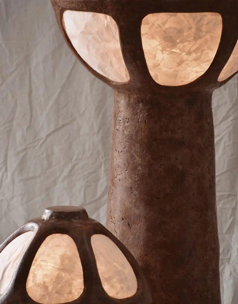 Unique, Small Bio Composite and Paper Lume Lamp Joanne OdishoDimensions: W 40 x D 40 x H 60 cmMaterials: Bio Composite, Unryu Rice Paper, Acrylic, Linen Fabric Cord.LIGHTING INCLUSIONS• X2 G9 bulbs per lamp• 240V Plug• 2M Cord lengthJoanne Odisho is a designer committed to sustainable practices, emphasising mindful material selection to minimise waste. Her work aims to foster awareness of where products come from and encourage more environmentally conscious choices in the home. With a strong foundation in interior design, Odisho seamlessly blends spatial planning and human interaction into her creative process. She transforms abstract concepts into visually compelling, functional objects, drawing inspiration from architecture and the natural world.All our lamps can be wired according to each country. If sold to the USA it will be wired for the USA for instance.