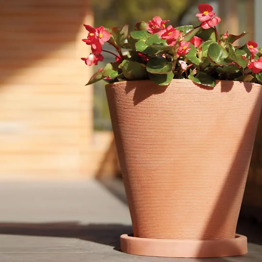 The Crescent Garden Universal Round Indoor/Outdoor Plant Saucer keeps things clean and dry around a round-bottomed planter without distracting from its smooth, clean lines. It is made out of rotation molded polymer resin, in a wide range of colors and sizes to accommodate planters with the same size and shape base.