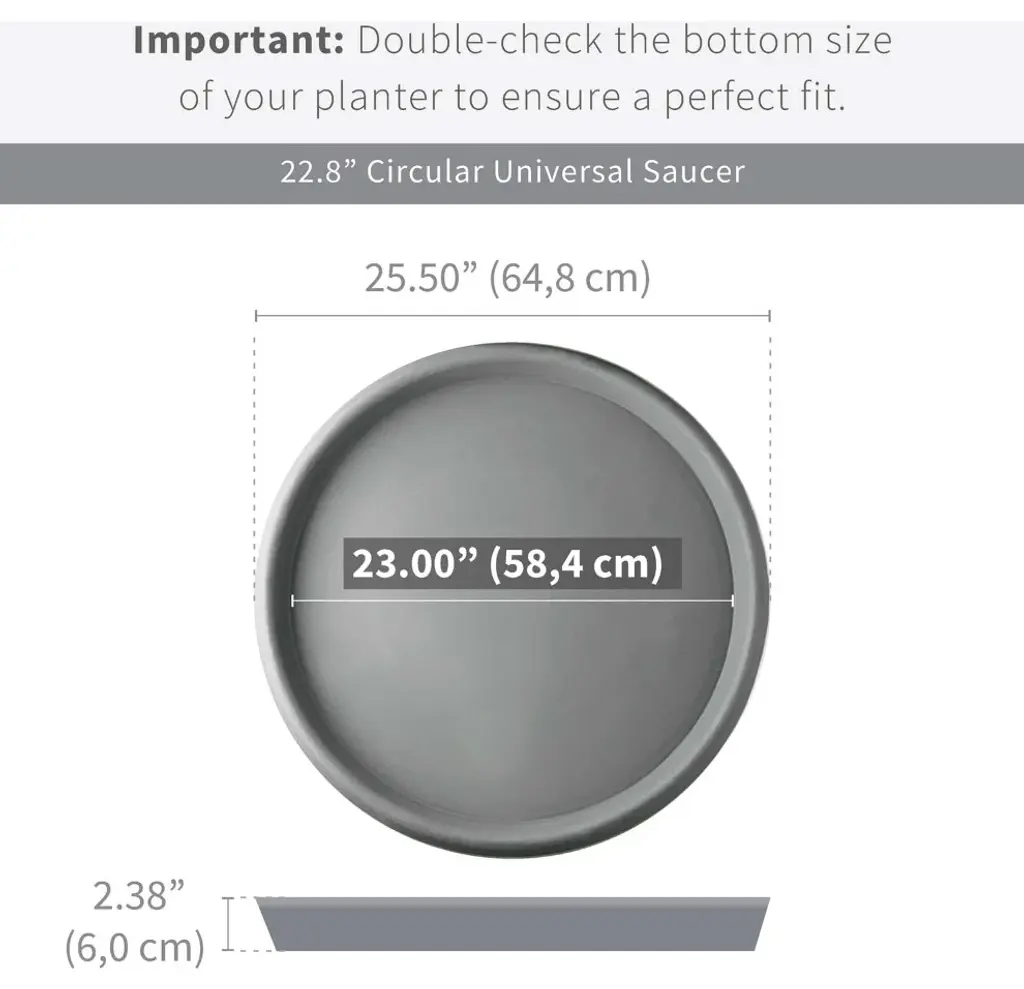 Coordinate your round-base planter with the perfect color and size of our round plant saucers, designed for durability to withstand the weight of heavy pots while protecting your surfaces from water damage and dirt. Crafted with weather-safe materials, these saucers are UV stabilized to ensure they remain fade-free and long-lasting, even when used outdoors. Ideal for both indoor and outdoor use, these aesthetically pleasing saucers seamlessly blend with any d�cor and are compatible with existing containers. Enhance your planting experience with our round plant saucers, ensuring your surfaces remain pristine while adding a touch of elegance to your gardening setup. Comes with a 10-year warranty for peace of mind.