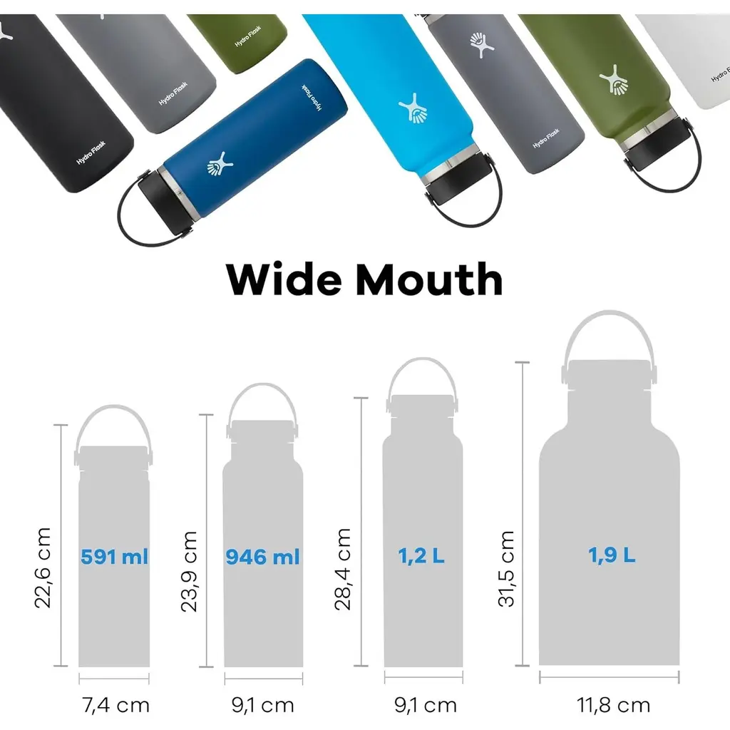 Flip it and sip it with the Hydro Flask 24 oz Wide Mouth Bottle With Flex Straw Cap. With a comfortable, flexible handle, the closeable, leakproof straw cap is easy to open and close with one hand, for on-demand hydration. Double-wall insulation keeps drinks cold up to 24 hours for cool refreshment. The slim design fits most cupholders, easily fits ice cubes and is dishwasher safe.