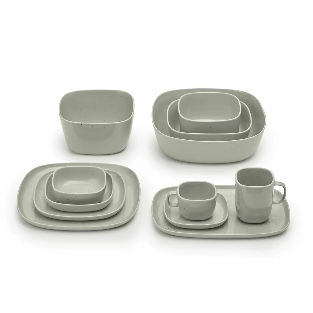 Long oval with a soft rim—easy to carry, easy to pass. Sebastian Herkner’s Vahlo platter stretches to 11.8″, giving mains, grilled veg, or a run of crostini their own lane. The low rim keeps sauces in check without feeling fussy. A small, useful detail: the unglazed foot grips wood or stone so the platter doesn’t skate as it lands on the table. The speckled glaze varies subtly piece to piece—quiet character you notice up close. Weeknight roast chicken, brunch fruit, a cheese-and-olive lineup. Also great as a staging tray by the stove.