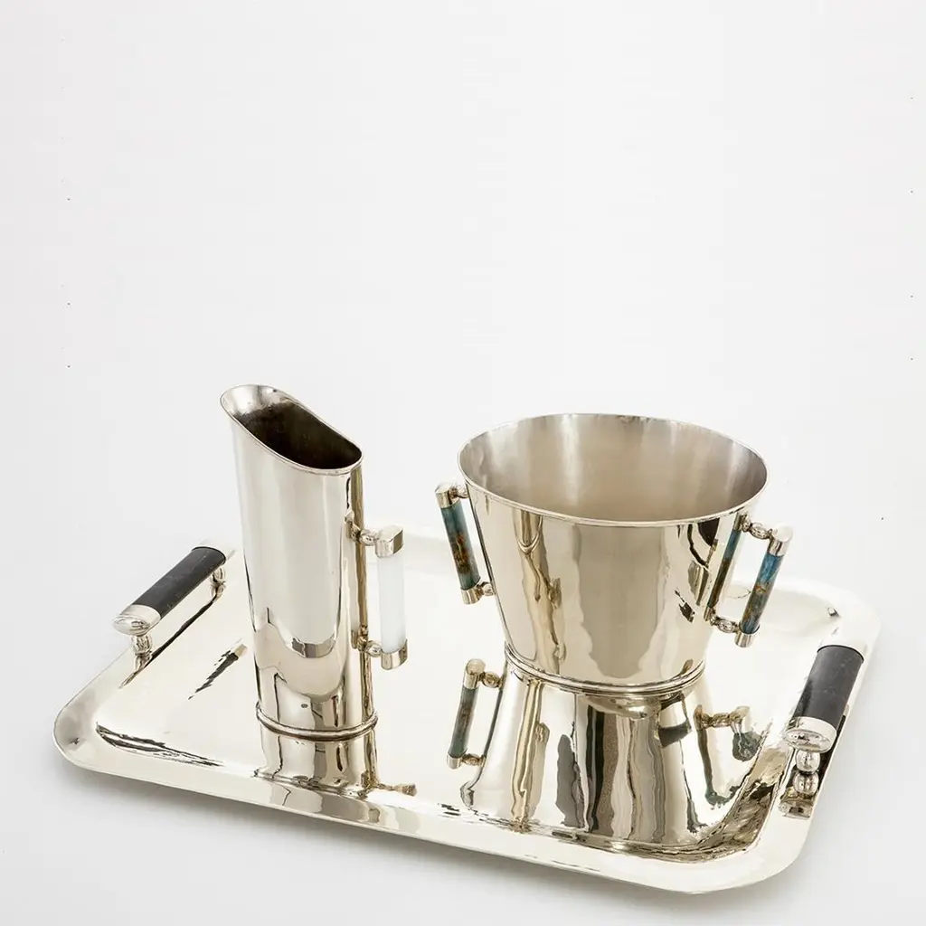 Valle Large Silver Alpaca & Cream Onyx Stone Pitcher