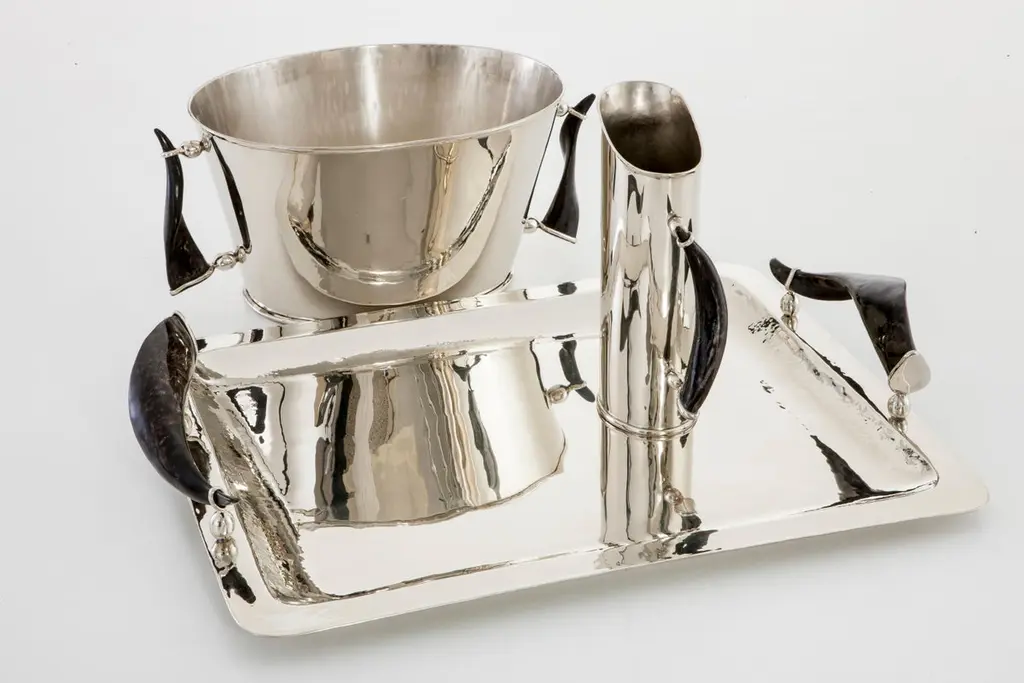 This family is inspired by the forms and figures shaped by the wind of the Moon Valley (in the province of San Juan, in the North of Argentina). It comes from this magical and inspiring place, blended with Horns and its colors. It has rectangular and square trays, mini decorative trays, champagne buckets for 1, 2, 3 and up to 6 bottles, and Pitchers.Our pieces are made by hand. One of a kind.All natural stones may vary in color.
