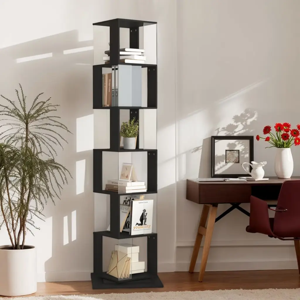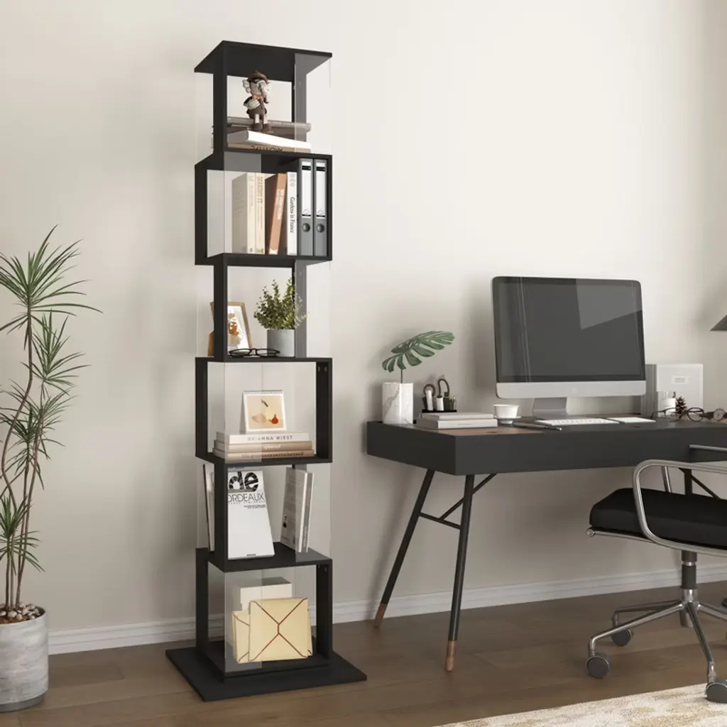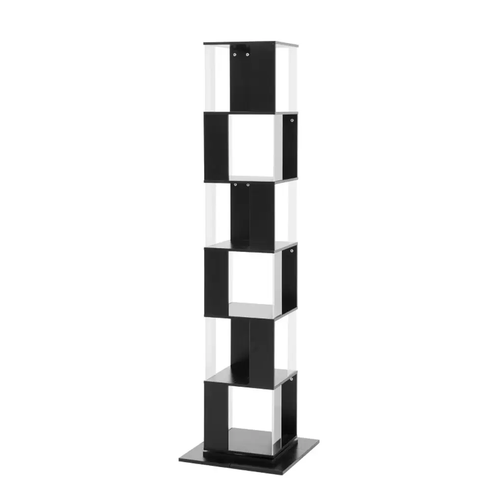 Vanirror 6 Tier Rotating Bookshelf, Floor Rack Simple Bookcase With Acrylic Plate Student Multi-function Creative Bookshelf