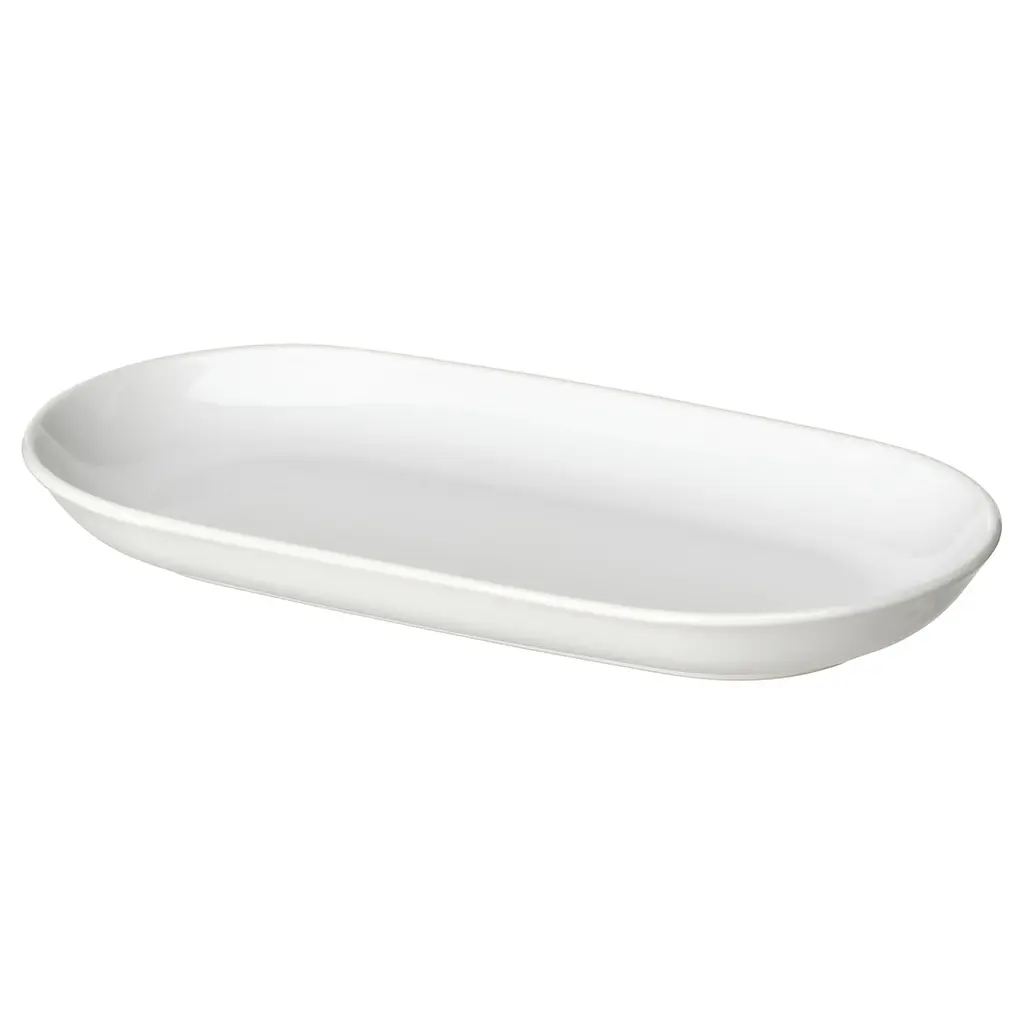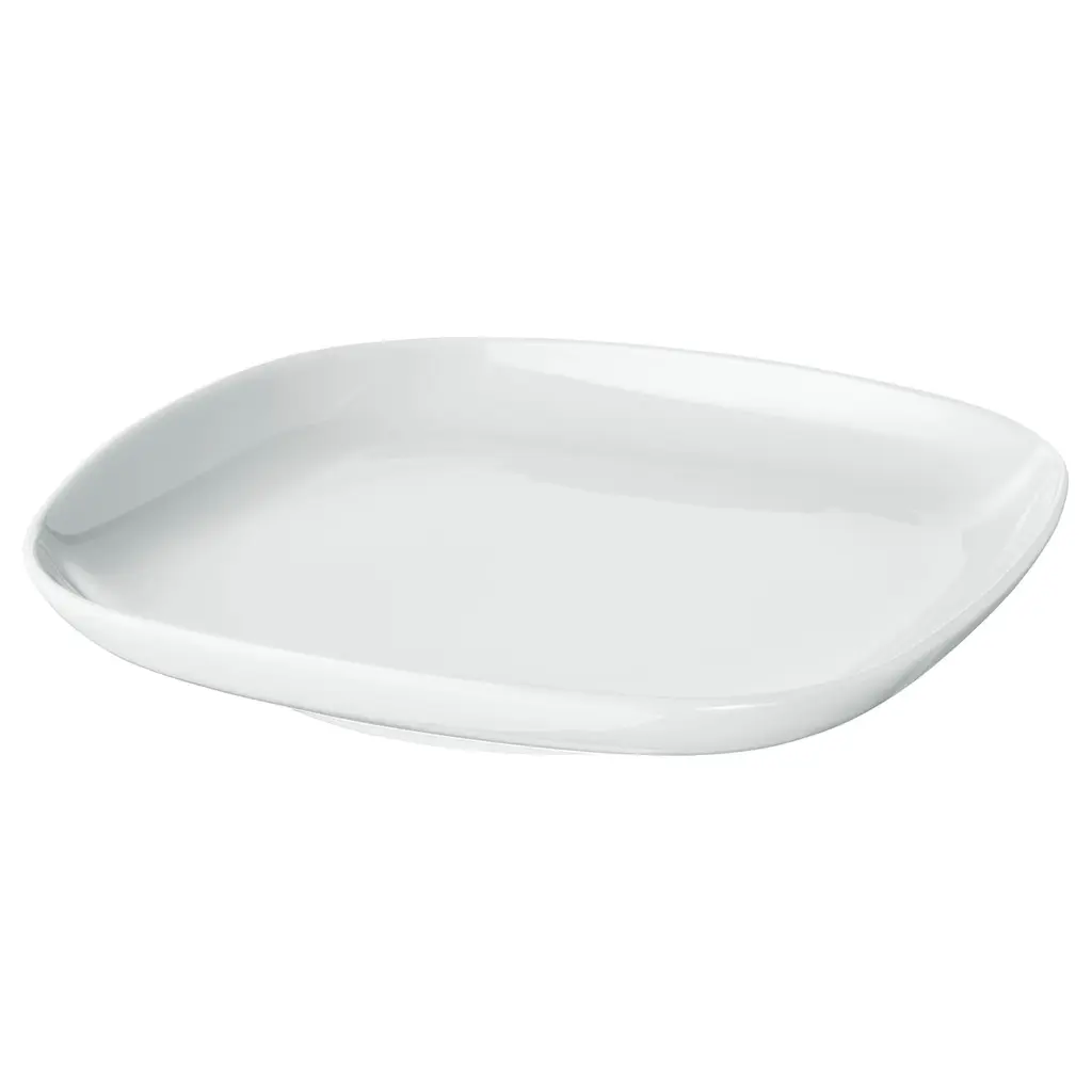 VÄRDERA Plate - white 12 ¼x10 ¼ ". Made of feldspar porcelain, which makes the plate impact resistant and durable. You can easily create a table setting that’s different but timeless, as the dinnerware has an exciting soft square shape that is also classic.