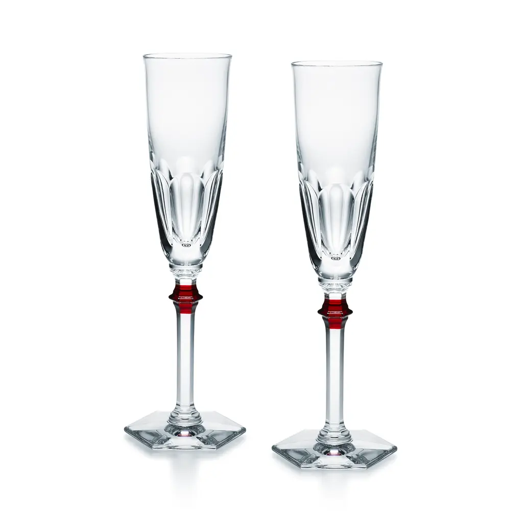 The crystal Vega Flutissimo is sleek and modern. The –issimo suffix emphasizes the flute's remarkably stunning shape. The stem is comprised of six stacked diamond-cut shapes, like exquisite beads strung together. The angularity of the lower half is artfully juxtaposed with the smoothness of the columnar bowl. Designed for Baccarat by Savinel & Rozé, the unique sculpted zigzag of the stem makes sipping bubbly all the more special.