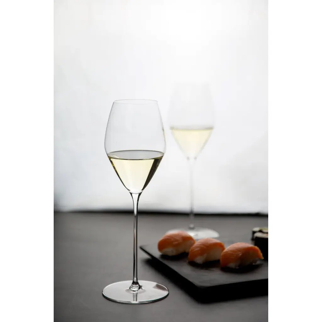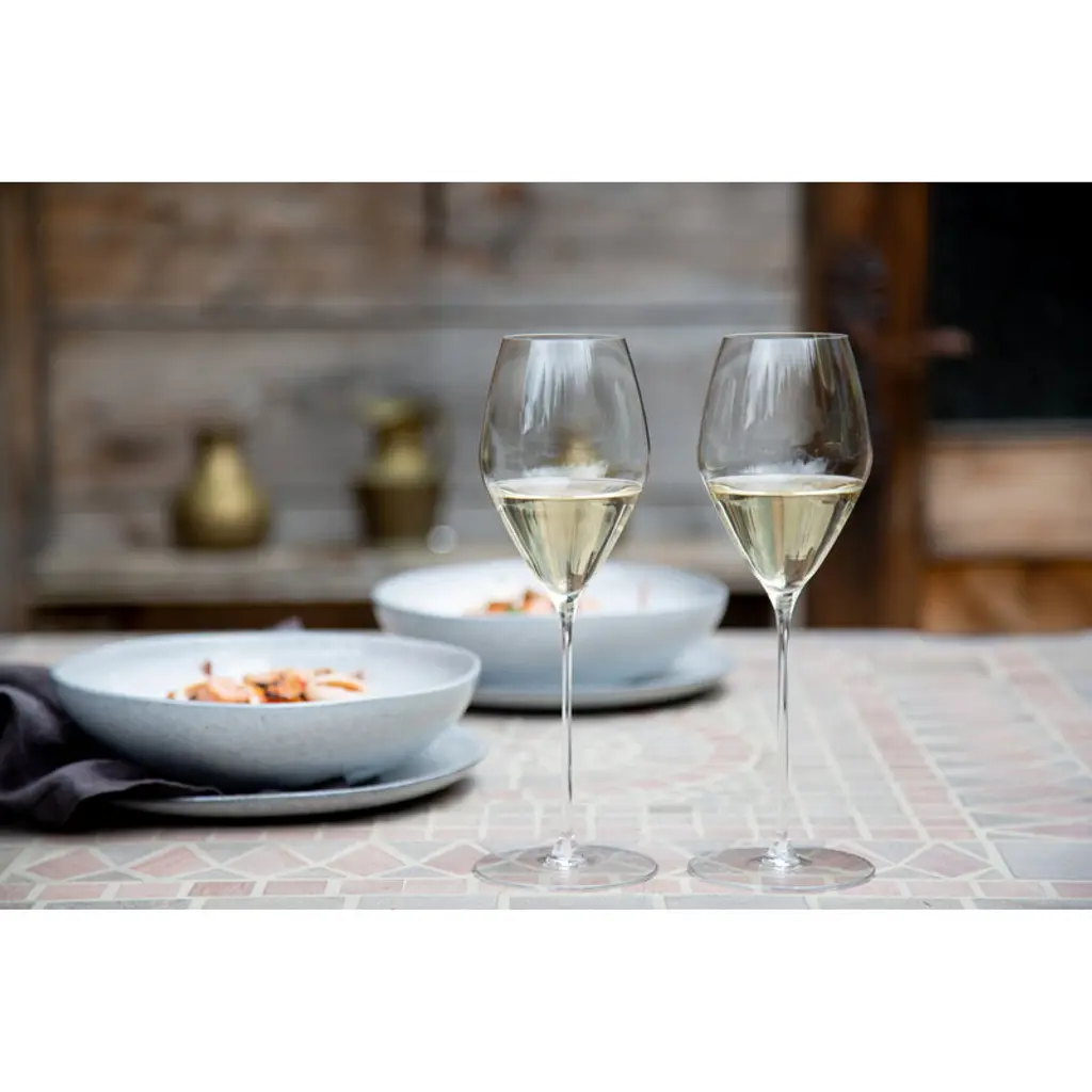 Riedel's Veloce wine glass is made for white and rosé wine lovers. The wine glass is not only versatile but also elegant, with an extremely slender stem that adds a touch of elegance. The package includes two wine glasses, so feel free to have a glass with your best friend! Riedel's Veloce collection elevates wine drinking to an even more enjoyable experience. Each glass is crafted from crystal glass using advanced machine-blown technology, giving them the artisanal feel of hand-blown glass. The series offers the perfect glass for every wine, down to the specific grape variety. This ensures your wine experience is as full-bodied and complex as the wine itself. Cheers!
