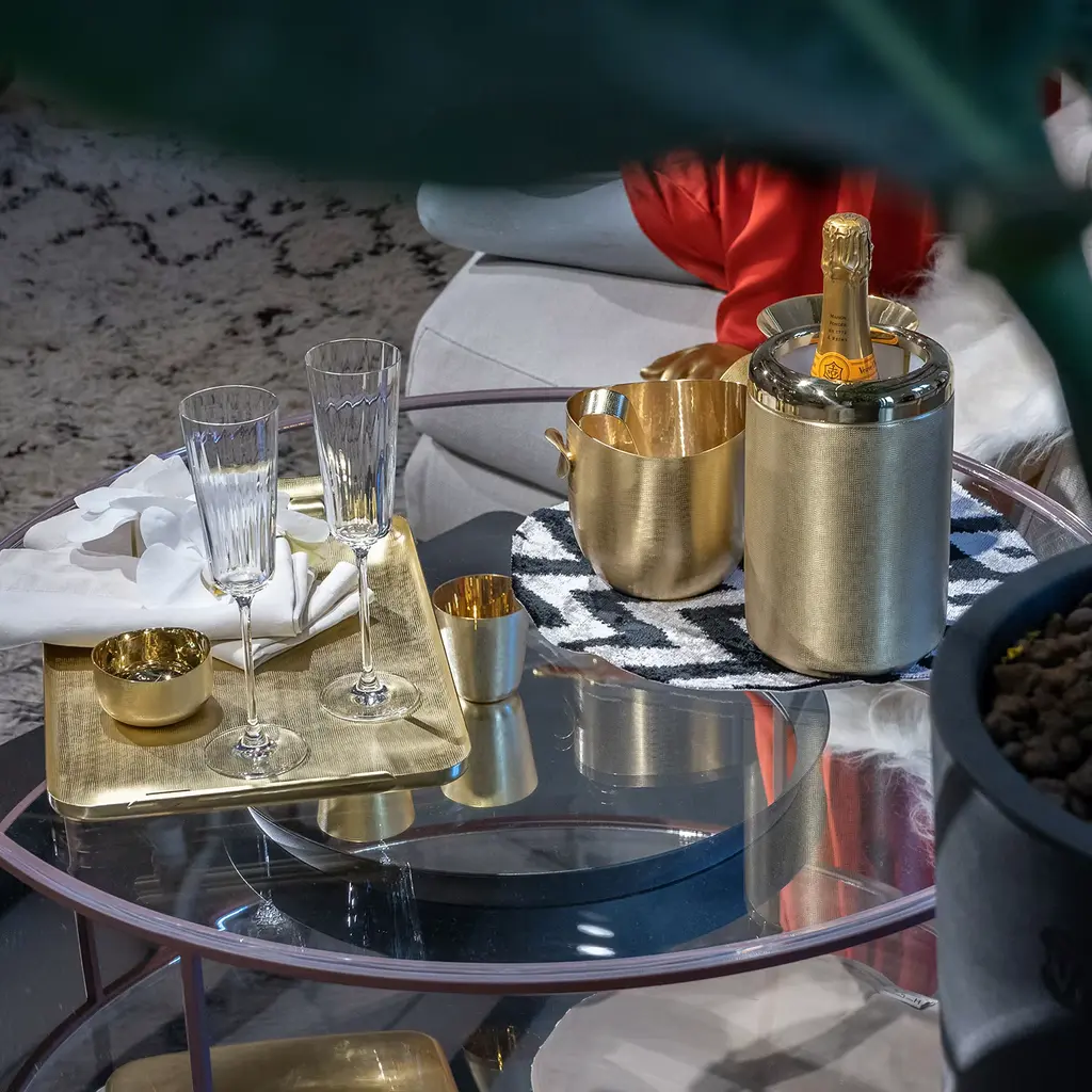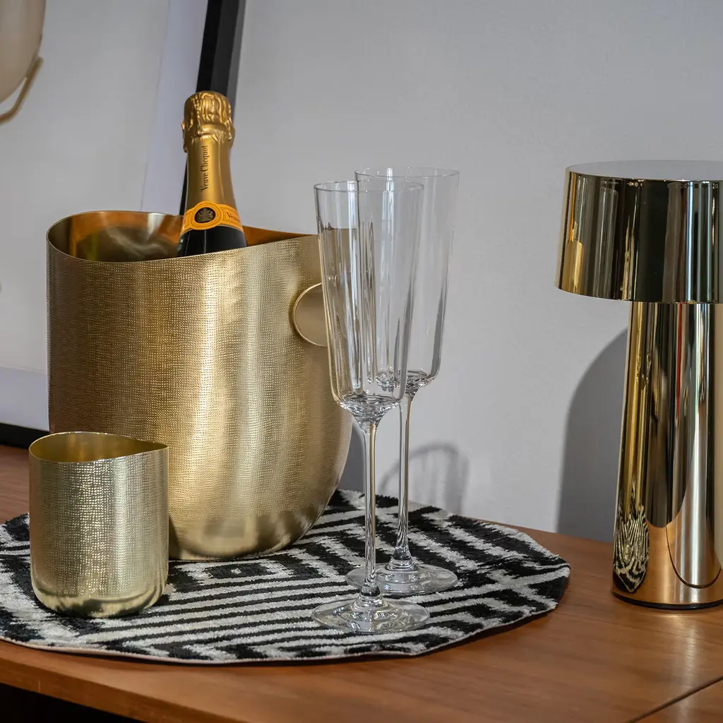 When brass and texture become Velvet for table jewels, for an exceptional mise en place. The brass is worked with the unique Zanetto know-how and special hammering to obtain a surface that is like velvet to the touch. Called “light gold brass” due to the resistance and the stainless property that this special work gives to the material.