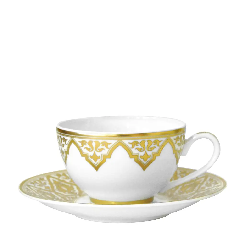 Venice's magnificent architecture and brocade textiles inform this stunning Bernardaud pattern. Wide 24K gold bands of pattern lend lavish detail to fine white porcelain.