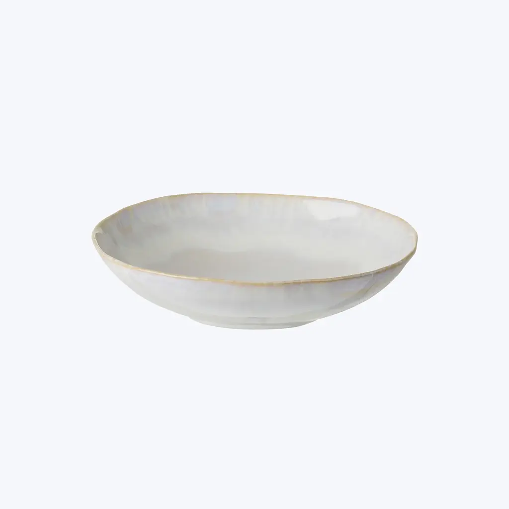Fusing Eastern and Western styles, philosophies, and techniques, stoneware ceramics are crafted in Thailand. Warm desert hues fade outward from the center, playing with light and shadows to evoke an air of mysticism.
