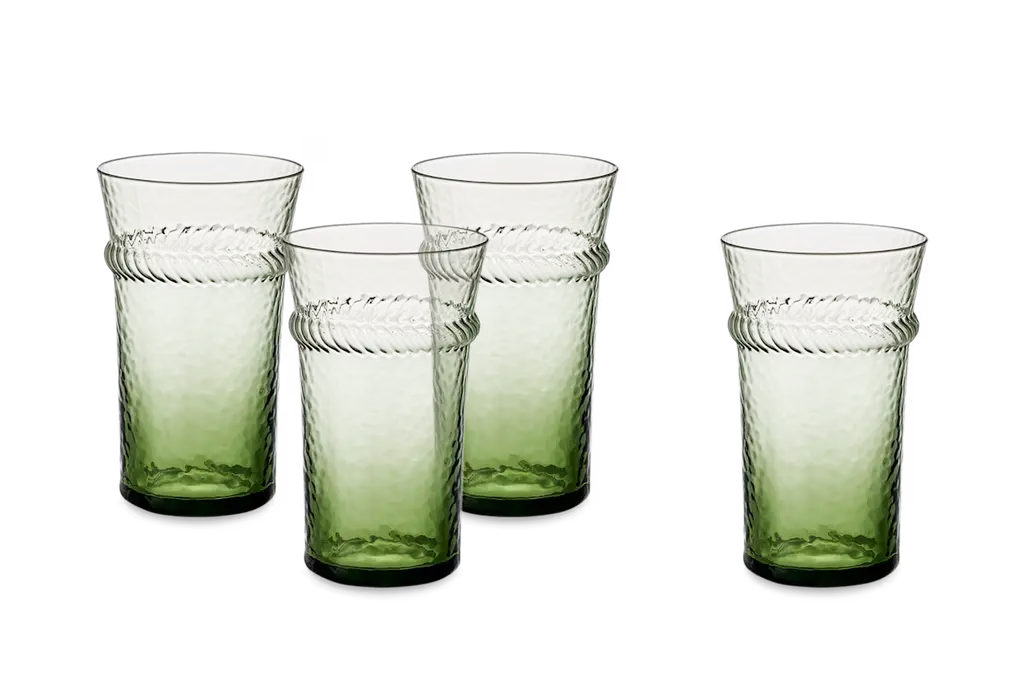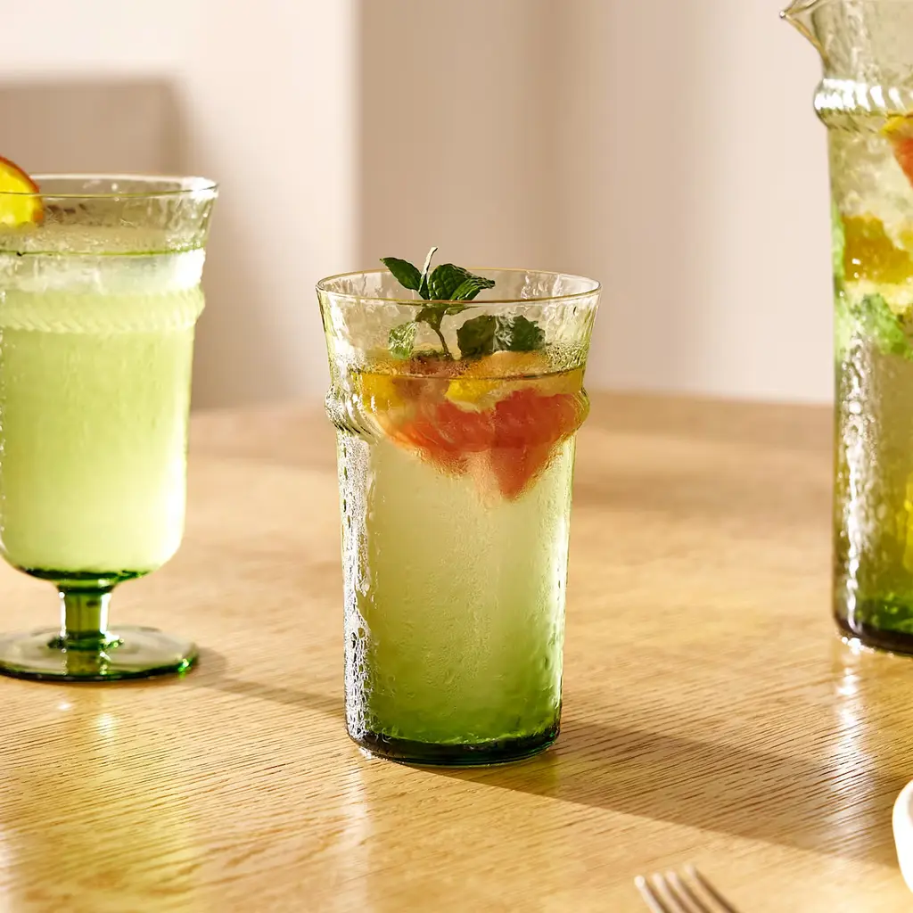 Handcrafted with vintage-inspired hammered detail, Verdant adds character to your table—from morning juice to afternoon iced tea.