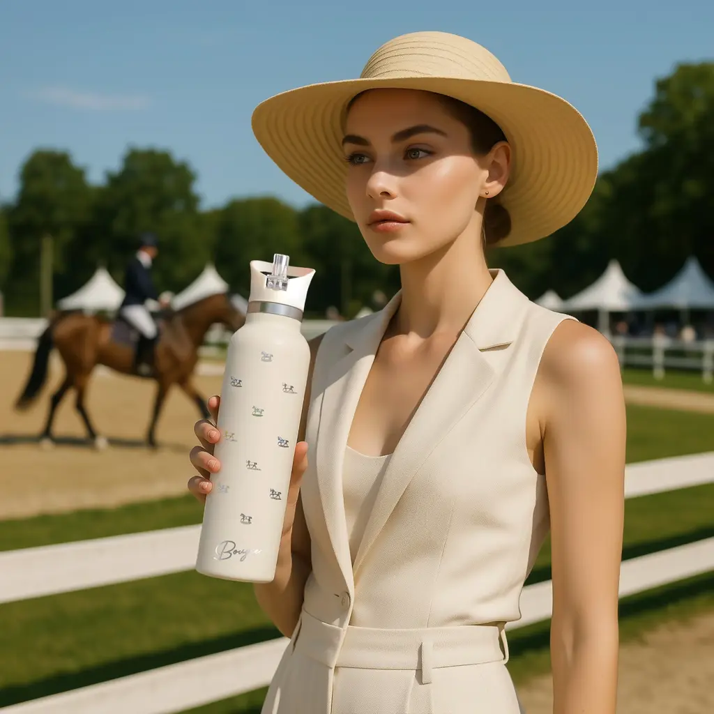 Crafted with precision, the Veredus II Bougie Bottle features a beautiful antique equestrian print. This bottle combines style with substance. Its durable design ensures it lasts, while double-wall insulation keeps your drinks at the perfect temperature—refreshingly cool or comfortably warm. The matte cream finish and matching cream-colored flip ‘n sip lid add an elegant touch.