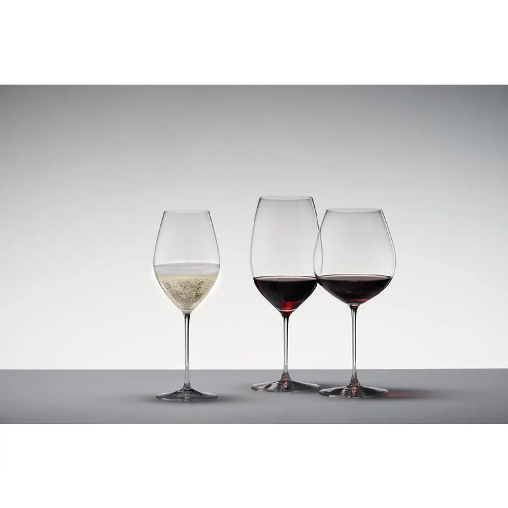 Riedel's Veritas red wine glass is the perfect match for fruity, acidic and light red wines. With the generously sized bowl, the red wine glass allows the rich aromas of wines to fully open up, while the slender stem adds a touch of elegance – making your wine look as though it's floating on air. The package includes four red wine glasses, so feel free to have a glass of red with all your best friends! Riedel's Veritas wine glass collection is a dream come true for any wine enthusiast – while it can't pour the wine for you, it does just about everything else! Launched in 2014, the series combines Riedel's mastery of glassblowing with a deep understanding of how glass shape influences the flavor of the wine. The result is a beautifully refined glass, designed to enhance every sip and bring out the best in each grape variety. Cheers!