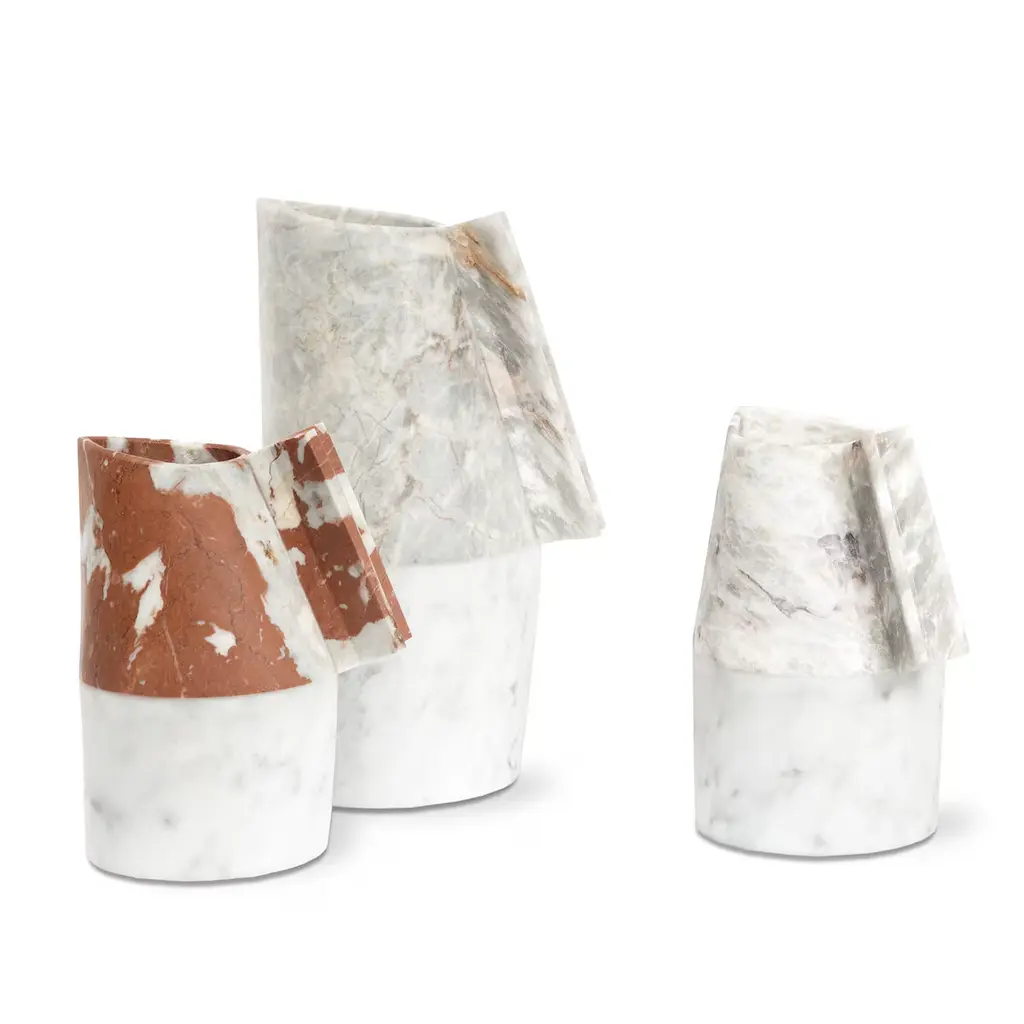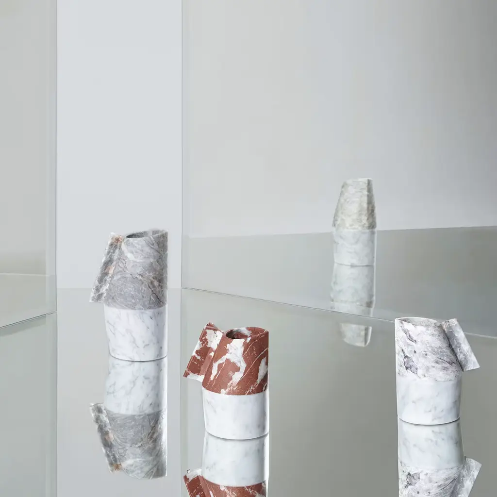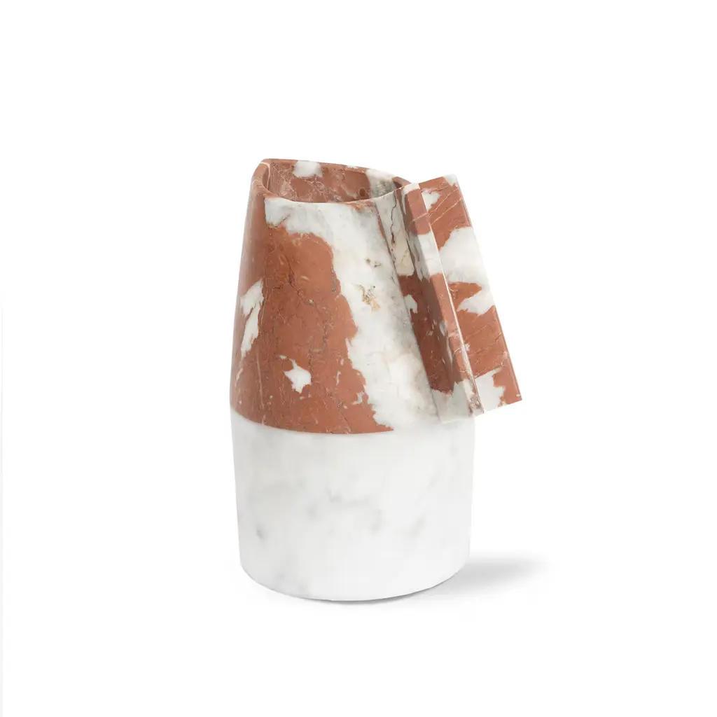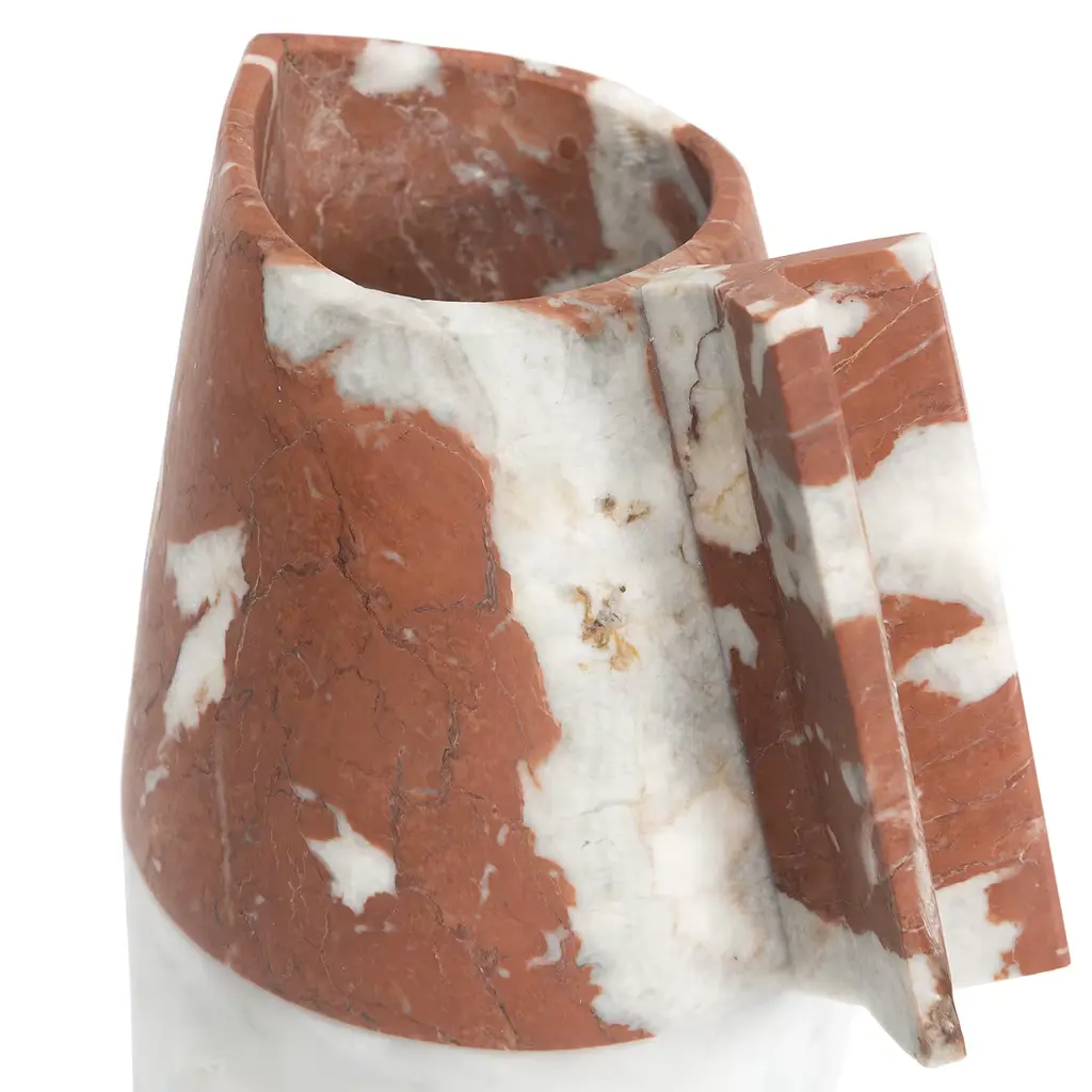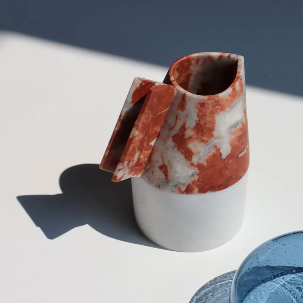 A bold union of modern aesthetic sensibility and traditional crafting materials, this refined carafe will elegantly serve drinks on any formal or casual occasion. This piece is designed by Patricia Urquiola and entirely handcrafted by skilled Italian artisans. The unconventional geometric shape and combination of white and red marbles - complete with its bold white inclusions and subtle grey veining - results in a captivating work of functional decor that will elevate the artistry of any kitchen or dining room.