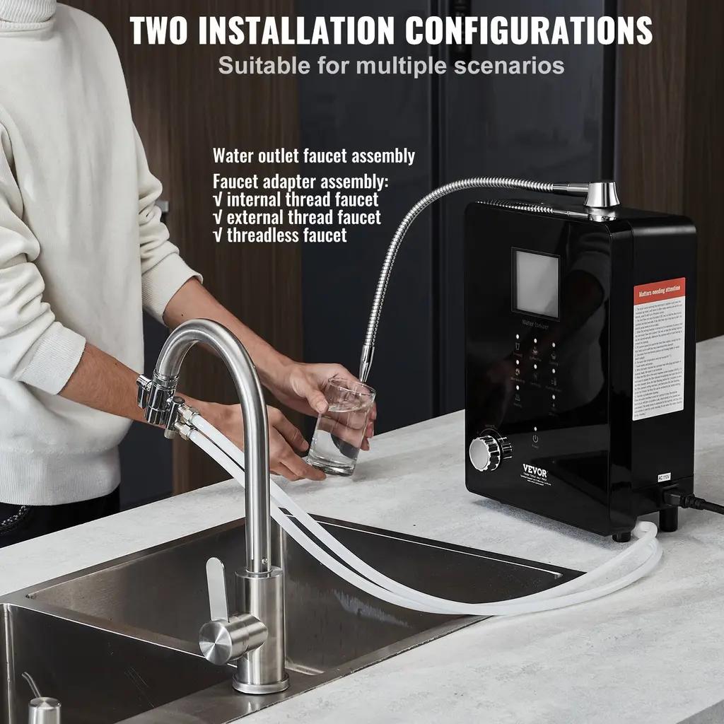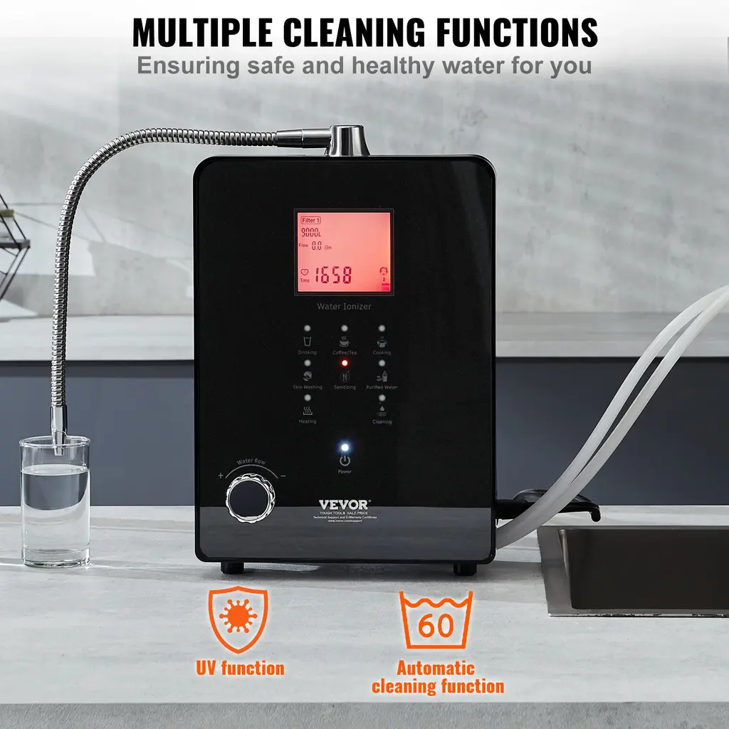 Vevor Alkaline Water Ionizer Machine Alkaline Acidic Hydrogen Water Purifier Water Heating - 9-Plate Sintered Electrolysis Plates