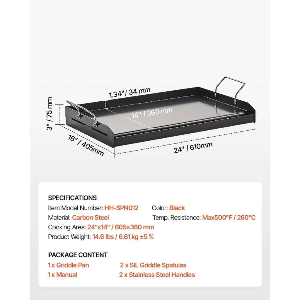 Vevor Carbon Steel Griddle, 24x16 Inch Universal Flat Top Rectangular Plate, Gas Grill Griddle For Bbq Grill, Teppanyaki, Black