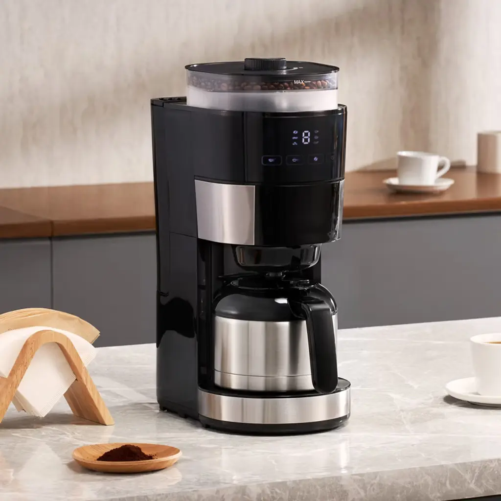 Feature: Coffee Bean Grinding Component: Our coffee maker provides coffee enthusiasts with an unparalleled convenience and quality experience. Once the coffee beans are ground into powder, they directly fall into the collection container, leaving no residue and no waste. This not only ensures the freshness of the coffee grounds but also simplifies the operation process. Adjustable Grinding Coarseness: With simple adjustment settings, you can easily switch between different grinding coarseness, allowing you to make the best grinding choice for various types of coffee beans. This ensures that you can enjoy high-quality coffee at home. Suitable for Coffee Beans and Ground Coffee: Switch between automatic grinding and brewing coffee beans or brewing with pre-ground coffee. Using pre-ground coffee saves the grinding time and is especially convenient for busy mornings or urgent situations. Adjustable Strength: The adjustable strength not only enhances the quality of your coffee but also greatly enriches your coffee experience and creativity. From light and moderate to strong, you can adjust the coffee strength according to your preference, ensuring each cup perfectly matches your taste. Use Paper Filters: Use disposable paper filters that can be discarded after use to reduce coffee grounds buildup in the funnel or internal pipes. This extends the coffee machine’s lifespan, maintains hygiene, and reduces cleaning hassles, making your coffee experience cleaner and more convenient. Package Content: 1 x Coffee Maker 1 x Coffee Scoop 1 x Filters 1 x Thermos Cup 1 x Instruction Manual