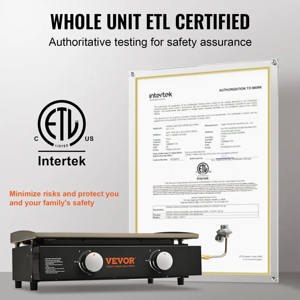 Vevor Commercial Griddle 22.4in 13,000 Btu & 16.9in 22,000 Btu Heavy Duty Manual Flat Top Griddle Non-Stick Cooking Plate - 22.4in