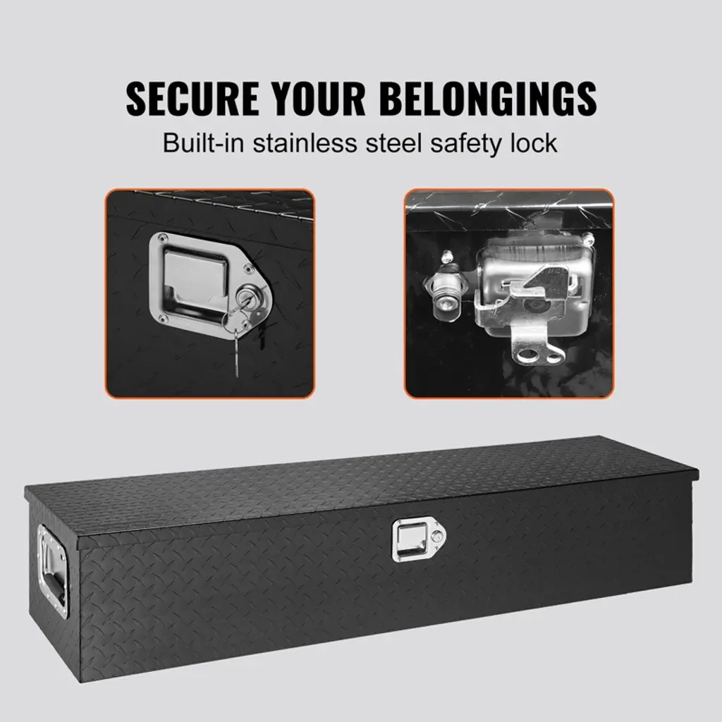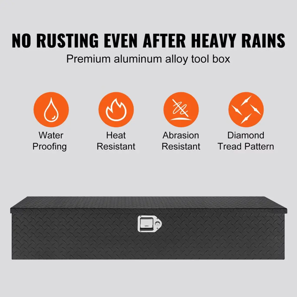 Vevor Heavy Duty Aluminum Truck Bed Tool Box, Diamond Plate Tool Box With Side Handle And Lock Keys, Storage Tool Box Chest Box Organizer, Black