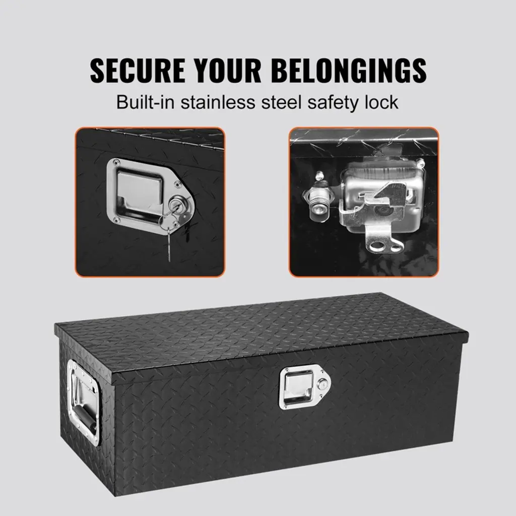 Vevor Heavy Duty Aluminum Truck Bed Tool Box, Diamond Plate Tool Box With Side Handle And Lock Keys, Storage Tool Box Chest Box Organizer, Black