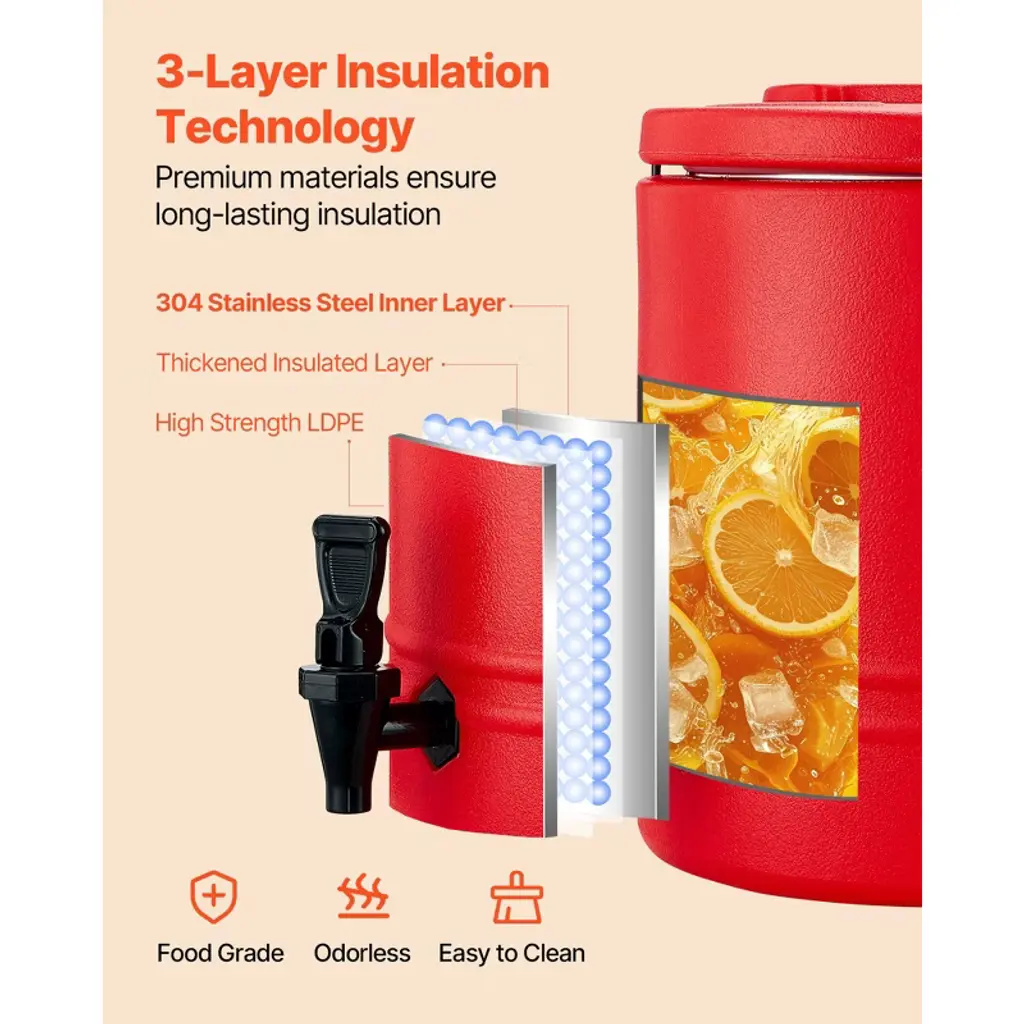 Vevor Insulated Beverage Dispenser, 8 Gal/30.3l Thermal Hot And Cold Drink Server Dispenser With Spigot, Food-grade Cooler Jug, Red