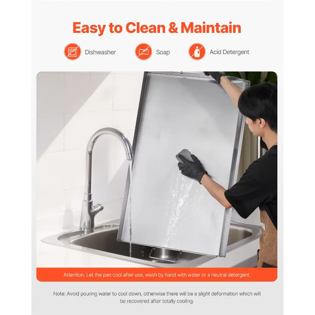 Vevor Stainless Steel Griddle, 36x22 Inch Universal Flat Top Rectangular Plate, Gas Grill Griddle For Bbq Grill, Teppanyaki, Silver