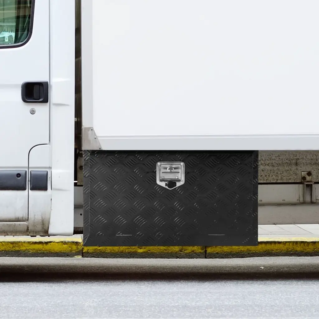 Feature: All-Purpose Toolbox for Anywhere: Are you tired of being unorganized? The underbody tool box can be installed not only on trucks' and trailers' bottoms, but also in different places, such as the back of a camper or pickup rack. You can store all your needs, from maintenance tools to camping equipment, in this truck box and keep everything organized. Nothing Gets In: The rubber sealing strip on this toolbox creates a tight seal when closed, preventing water from seeping in. You can keep your items dry even on rainy days, without fear of rust or corrosion. Put your belongings in this toolbox with confidence! Built to Last: The robust aluminum alloy material of this truck box provides rust prevention and corrosion resistance that cannot be compared to iron. The thickened panel and tread pattern design ensure that the truck box is not easily damaged or scratched during long-term road driving. Safety Comes First: The embedded T-shaped handle of this underbody box is designed without bulge, making it resistant to scratches and hits during driving. The box is lockable and comes with two exclusive keys to ensure the security of your items. Increase your underbody storage space with this truck box and have peace of mind knowing your belongings are safe from theft. Install In No Time: This underbody truck box measures 36 x 14 x 16 inch/914 x 356 x 406 mm, so make sure to measure your vehicle's underbody space before purchasing. VEVOR provides a variety of dimensions to meet your needs. You can also purchase brackets to install or do a DIY assembly yourself. Note that if you assemble the truck box on the vehicle, make sure to turn off the power to prevent a short circuit. Package Content 1 x Underbody Tool Box 2 x Key 1 x Manual
