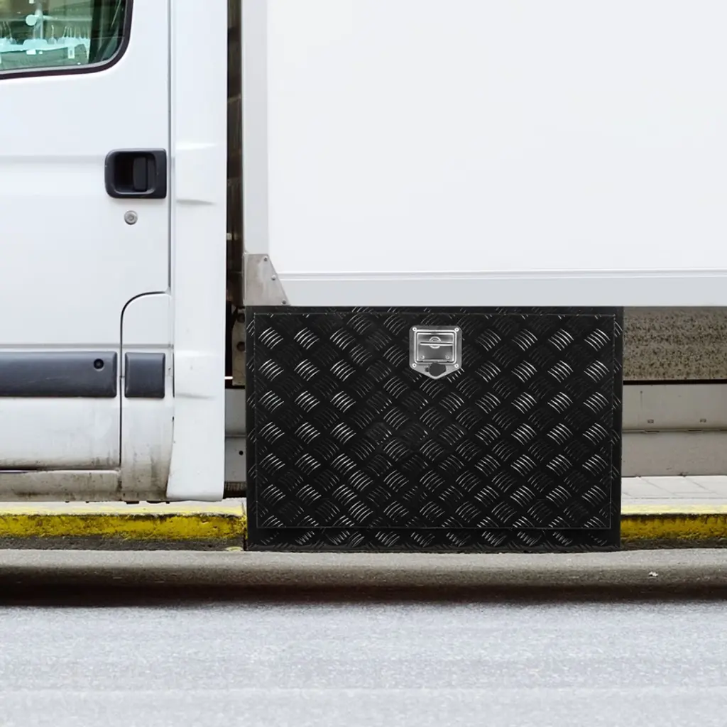 Feature: All-Purpose Toolbox for Anywhere: Are you tired of being unorganized? The underbody tool box can be installed not only on trucks' and trailers' bottoms, but also in different places, such as the back of a camper or pickup rack. You can store all your needs, from maintenance tools to camping equipment, in this truck box and keep everything organized. Nothing Gets In: The rubber sealing strip on this toolbox creates a tight seal when closed, preventing water from seeping in. You can keep your items dry even on rainy days, without fear of rust or corrosion. Put your belongings in this toolbox with confidence! Built to Last: The robust aluminum alloy material of this truck box provides rust prevention and corrosion resistance that cannot be compared to iron. The thickened panel and tread pattern design ensure that the truck box is not easily damaged or scratched during long-term road driving. Safety Comes First: The embedded T-shaped handle of this underbody box is designed without bulge, making it resistant to scratches and hits during driving. The box is lockable and comes with two exclusive keys to ensure the security of your items. Increase your underbody storage space with this truck box and have peace of mind knowing your belongings are safe from theft. Install In No Time: This underbody truck box measures 36 x 24 x 24 inch/914 x 610 x 610 mm, so make sure to measure your vehicle's underbody space before purchasing. VEVOR provides a variety of dimensions to meet your needs. You can also purchase brackets to install or do a DIY assembly yourself. Note that if you assemble the truck box on the vehicle, make sure to turn off the power to prevent a short circuit. Package Content 1 x Underbody Tool Box 2 x Key 1 x Manual