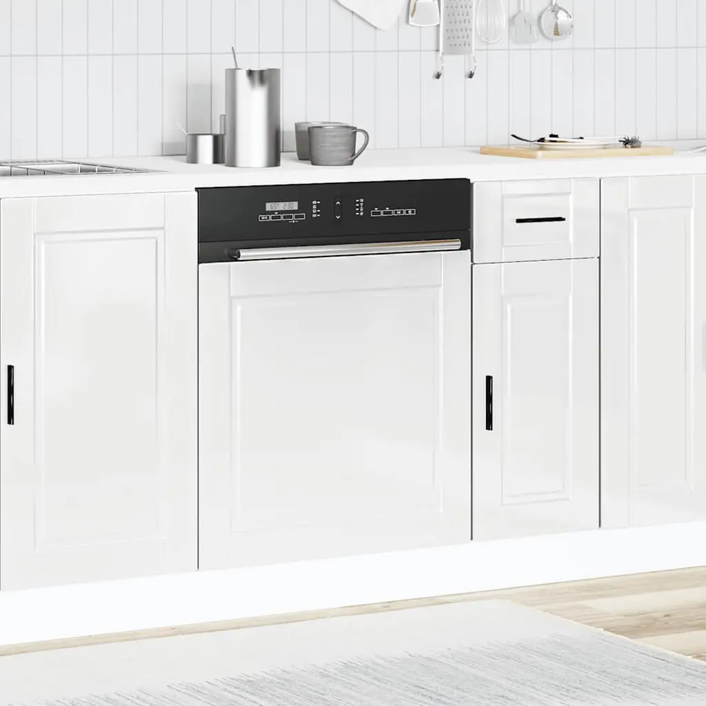 This Dishwasher Panel mixes style and practicality, giving your dishwasher a smart cover that goes with any kitchen decor. Made from engineered wood with a lovely high gloss white finish, it boosts your home's overall look while fitting right in with your kitchen's design. Visually Appealing: Its high gloss white surface reflects light, making your kitchen look even bigger and brighter. Durability: Made from moisture-resistant engineered wood, it handles the busy kitchen environment like a champ. Seamless Integration: Fits standard dishwashers, offering a unified look, boosting your kitchen's overall appearance. Easy Cleaning: The smooth surface means simple upkeep; just a quick wipe with a damp cloth keeps it looking sleek. Modern Style: With its contemporary design and clean lines, it adds elegance and functionality to any kitchen.
