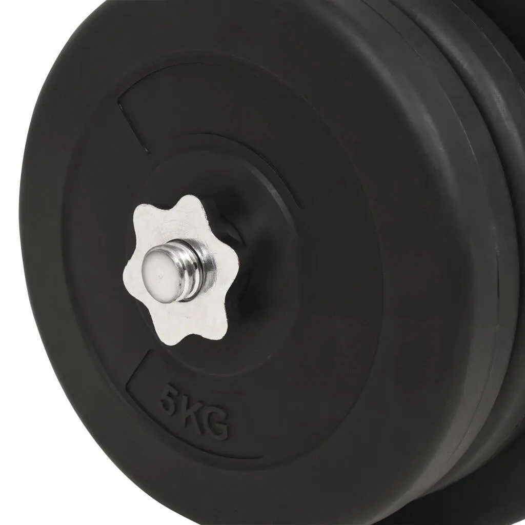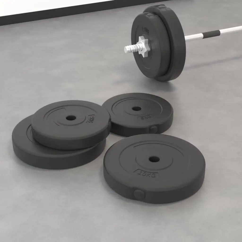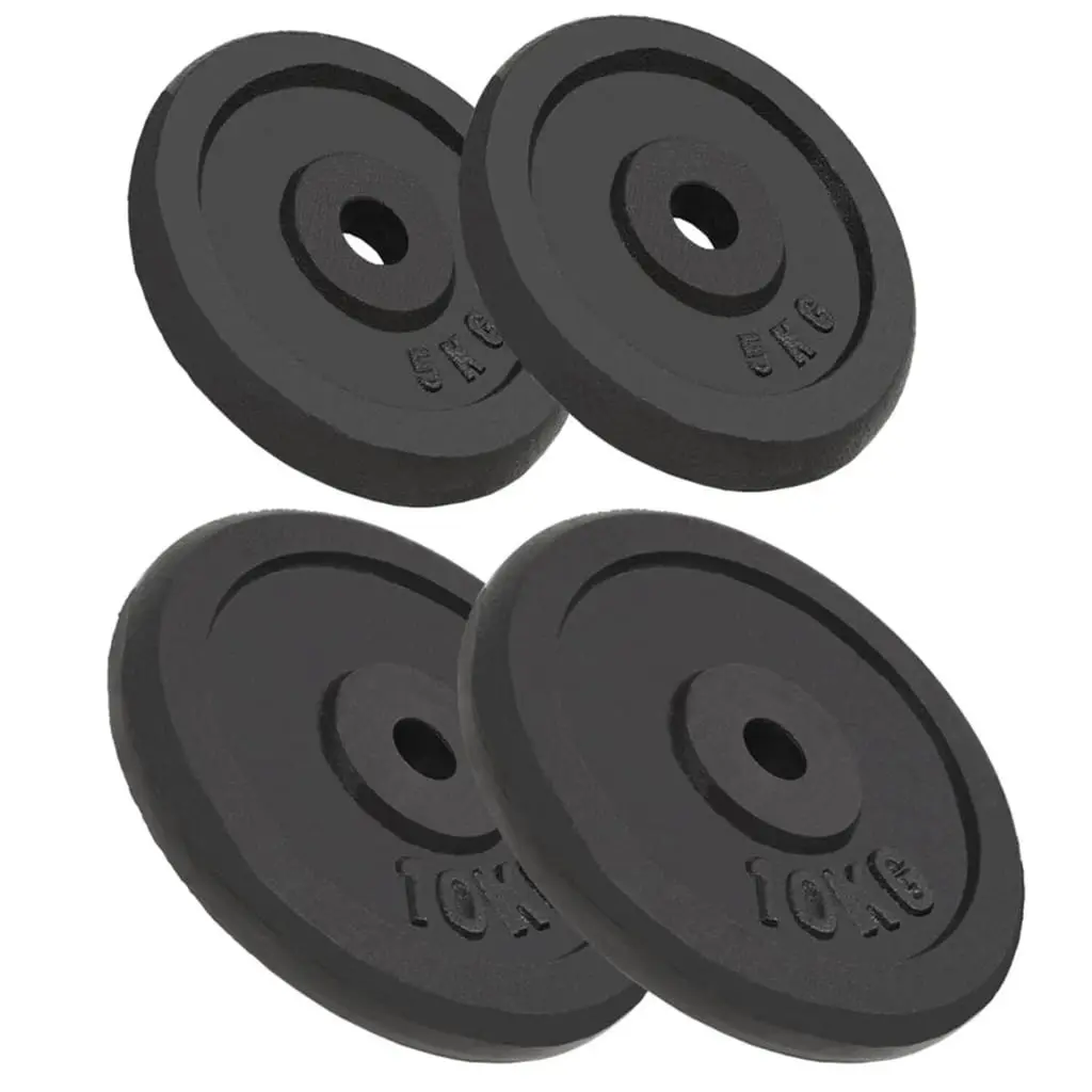 These 4 weight plates are suitable for professional dumbbell workouts at home. The weight plates are covered with robust, floor-friendly plastic.