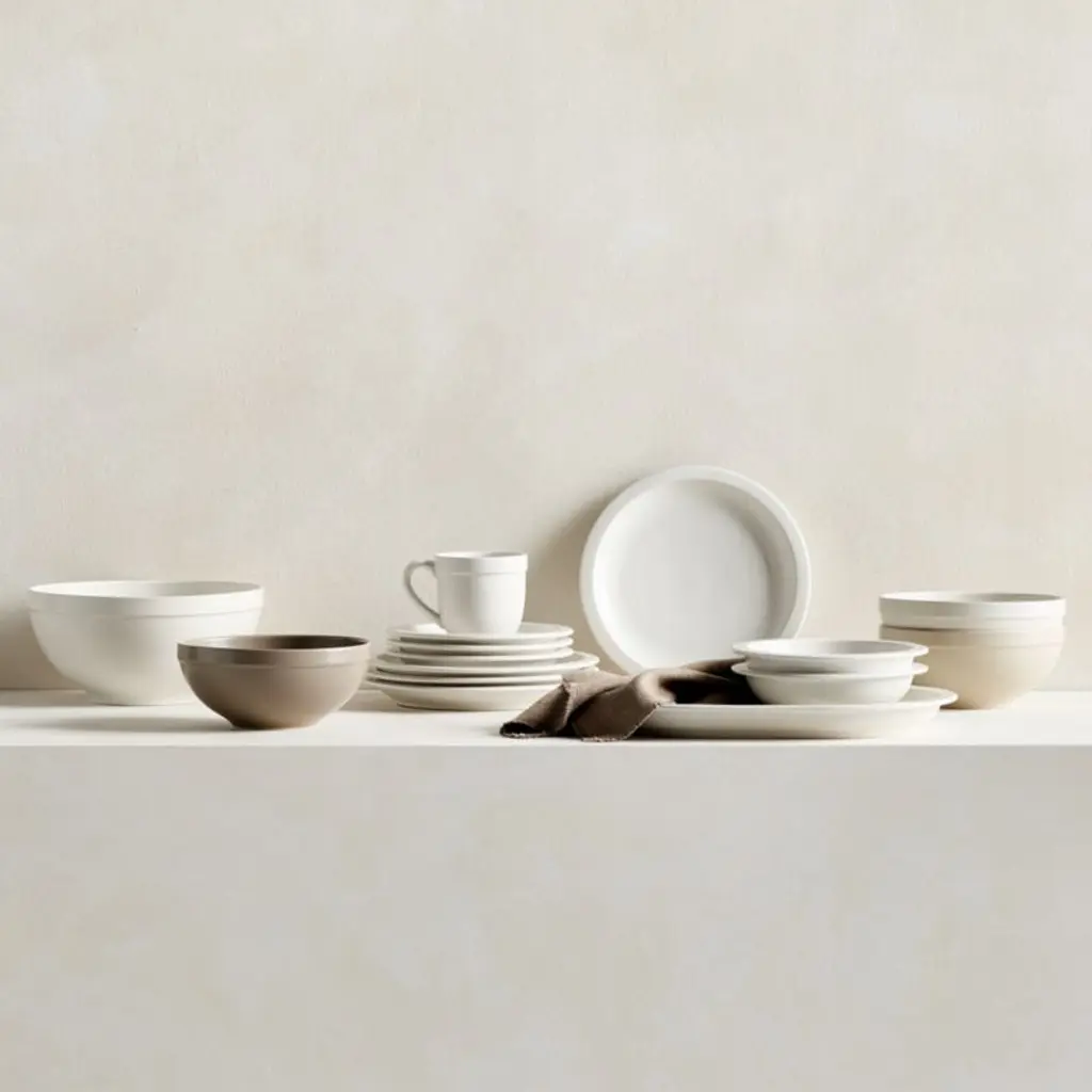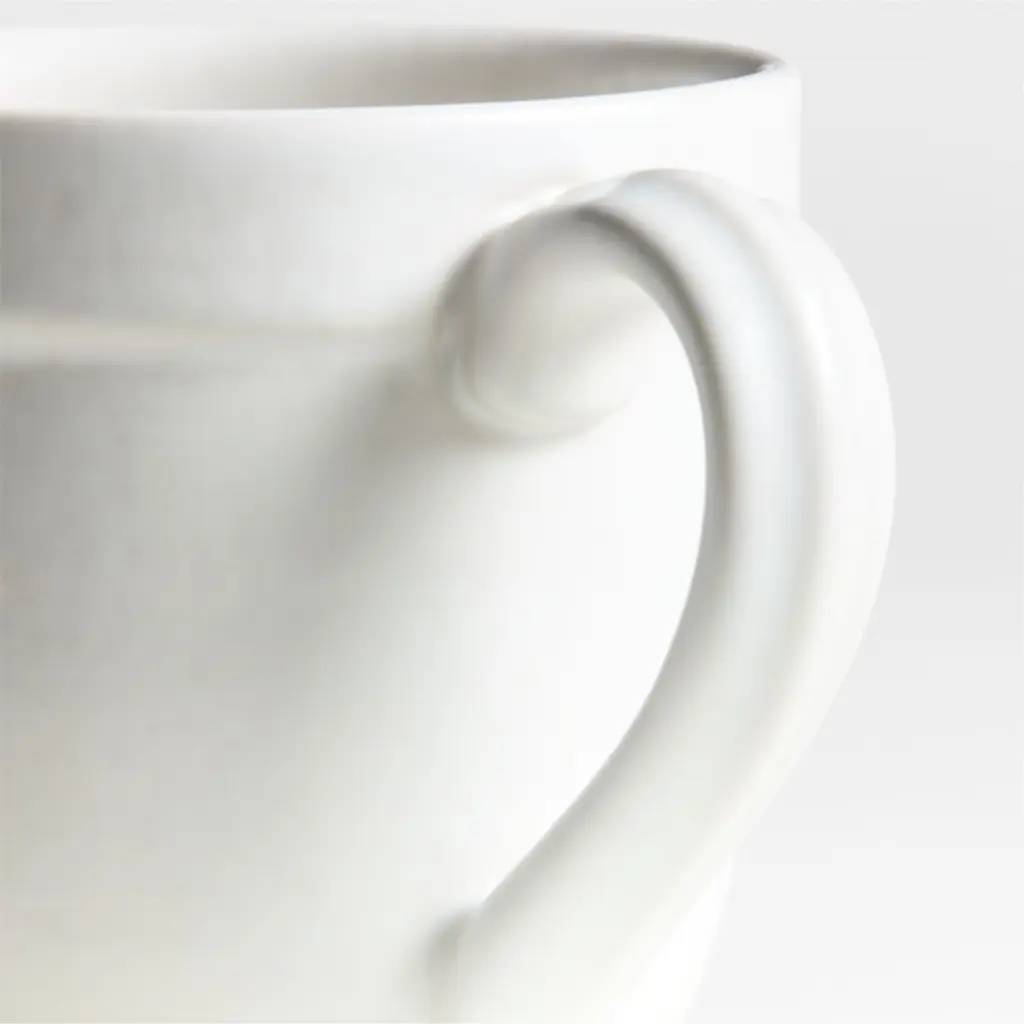 Rustic, modern and Mediterranean, our Villa collection was inspired by the casual dining experiences our designers enjoyed on a sourcing trip to Portugal. Matte glazes in a palette of soft, calming earth tones coat stoneware dishes hand shaped by Portuguese artisans. Subtle wheel marks and the reactive glazes create subtle textures unique to each piece. Finished in warm white with a smattering of speckles, this mug makes for a timeless-yet-fresh presentation of coffee, tea and cocoa.