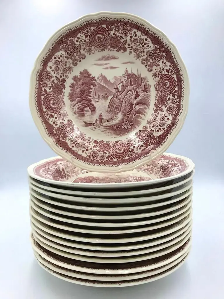 Villeroy & Boch Deep Soup Plates, Red Burgenland Series, Germany
