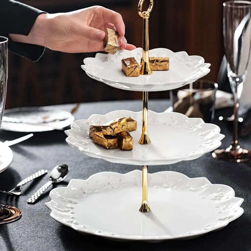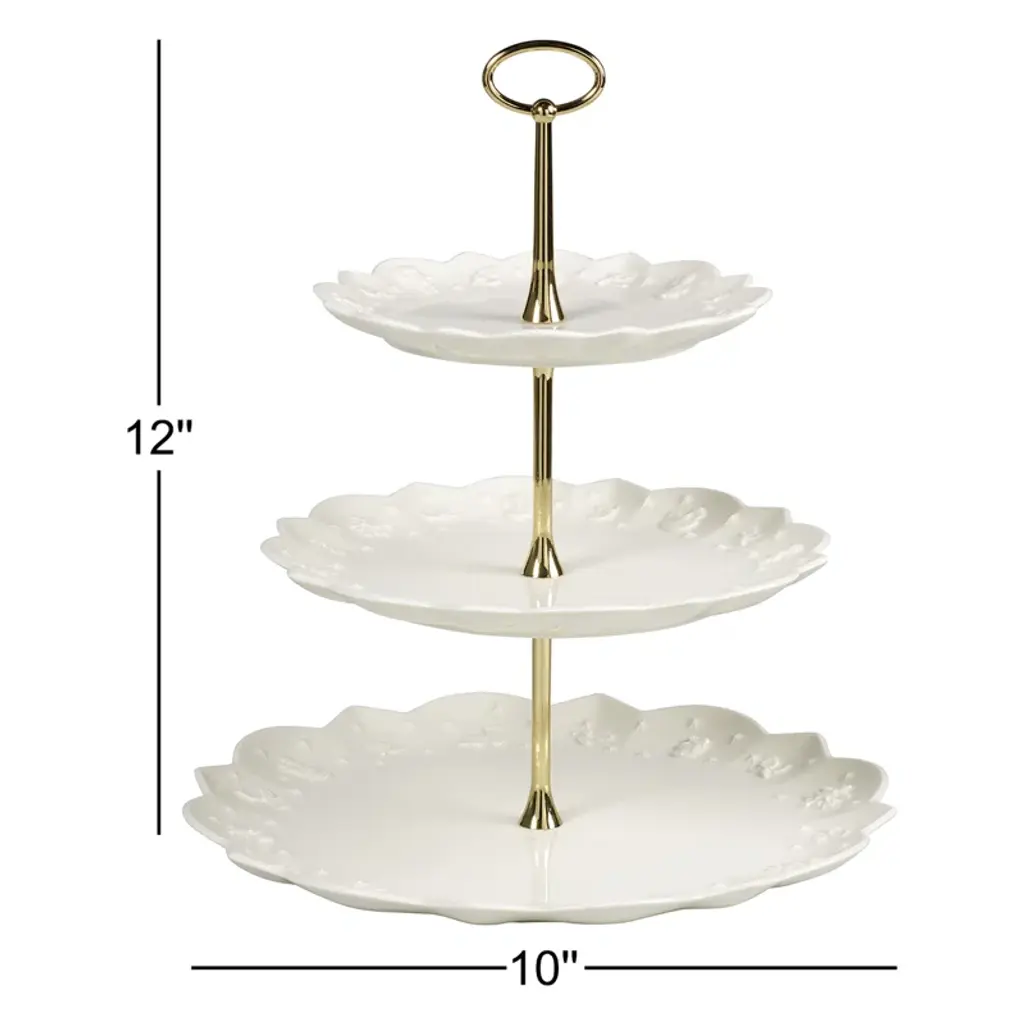 This tier server features the same shapes found in the original collection but raised along the edges and on premium porcelain that pairs perfectly with other dinnerware collections.